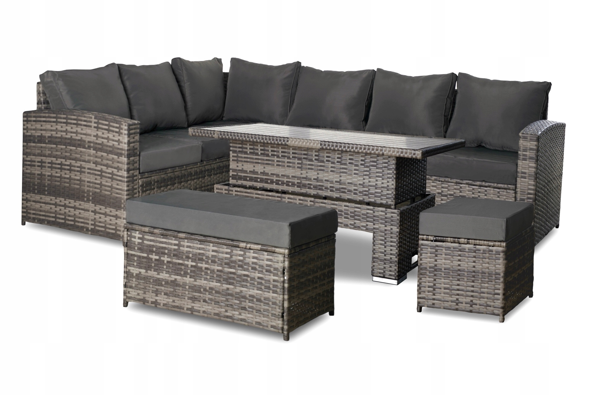 ZESTAW OGRODOWY MALAGA CORCIANO NAROŻNIK PUFY STÓŁ MEBLE OGRODOWE KOMPLET