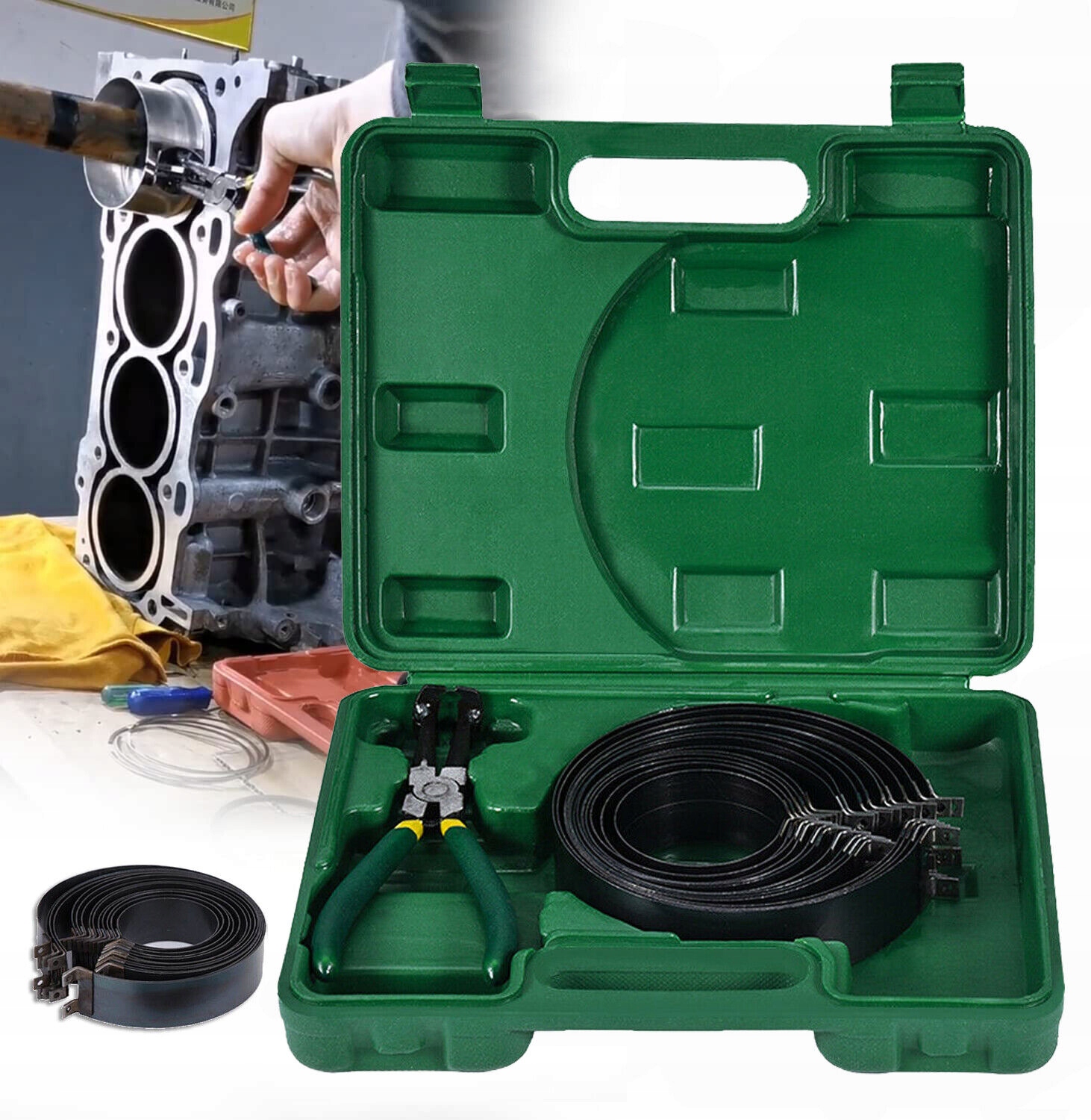 Zestaw opasek zaciskowych do pierścieni tłokowych. Szczypce do pierścieni