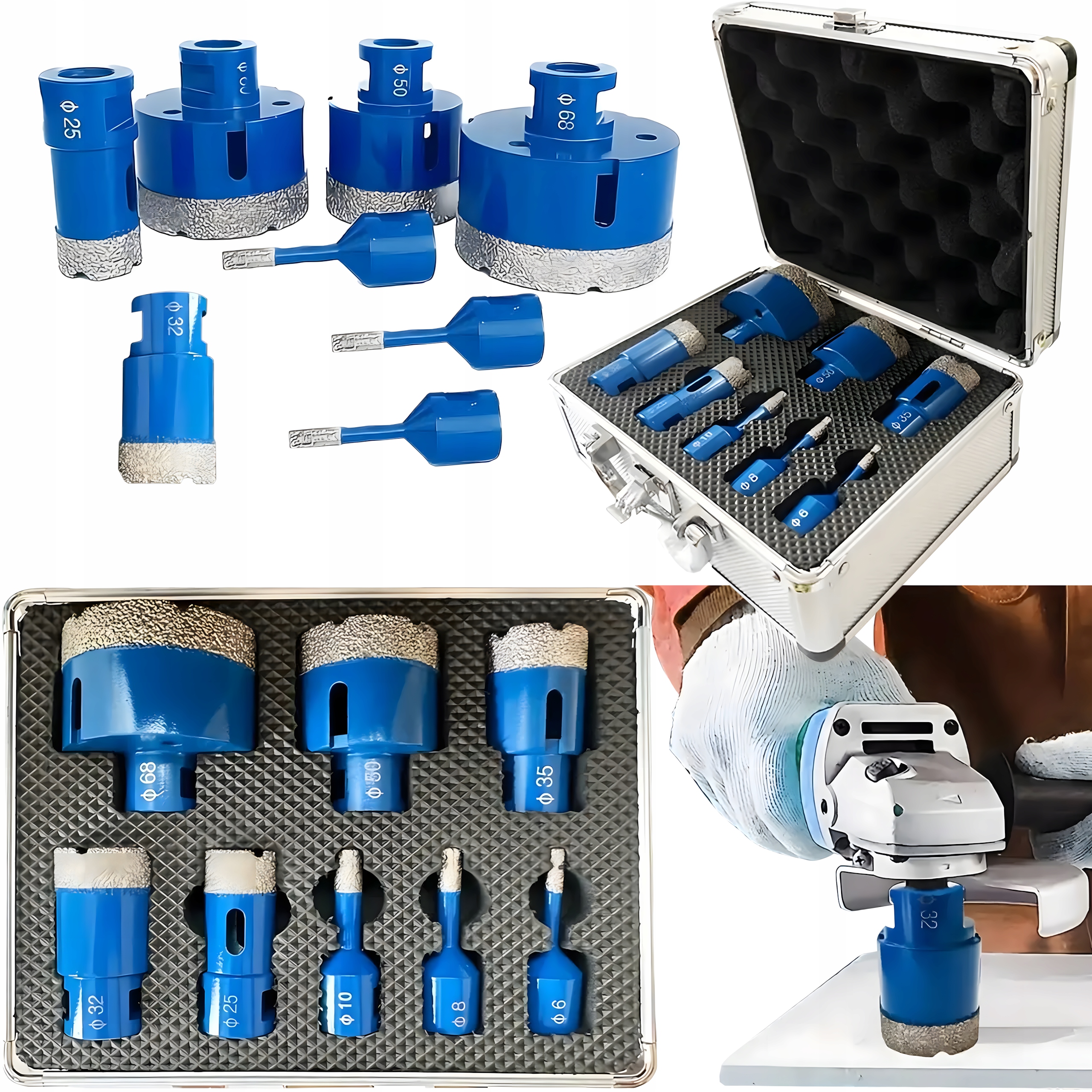 ZESTAW OTWORNICE KORONKI WIERTŁA DIAMENTOWE DO GRESU PŁYTEK 6-68mm WALIZKA