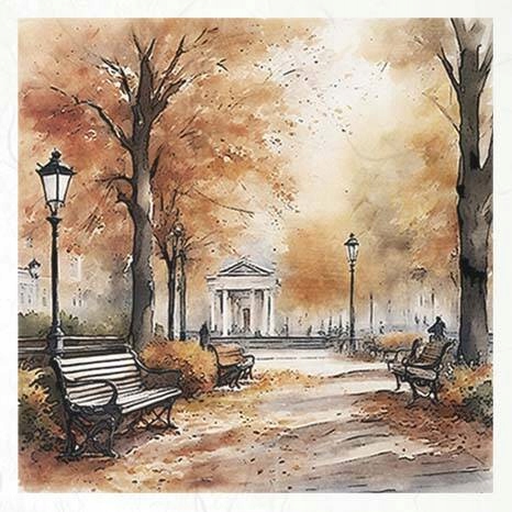 ZESTAW PAPIERÓW RYŻOWYCH ITD RSM101 jesienne widoczki, jesień, park