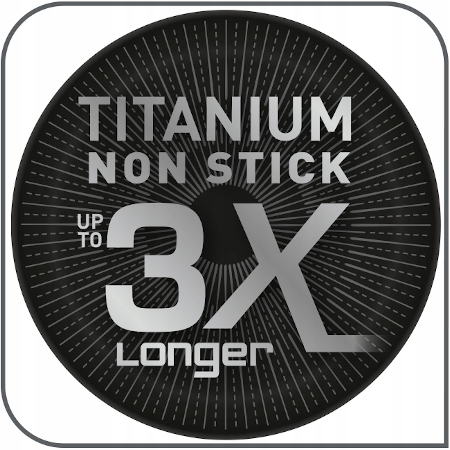 Ощутите новое качество благодаря чрезвычайно прочному антипригарному покрытию, усиленному частицами титана. Благодаря этому вы сможете использовать сковороду до трех раз дольше, чем сковороды со стандартным покрытием.