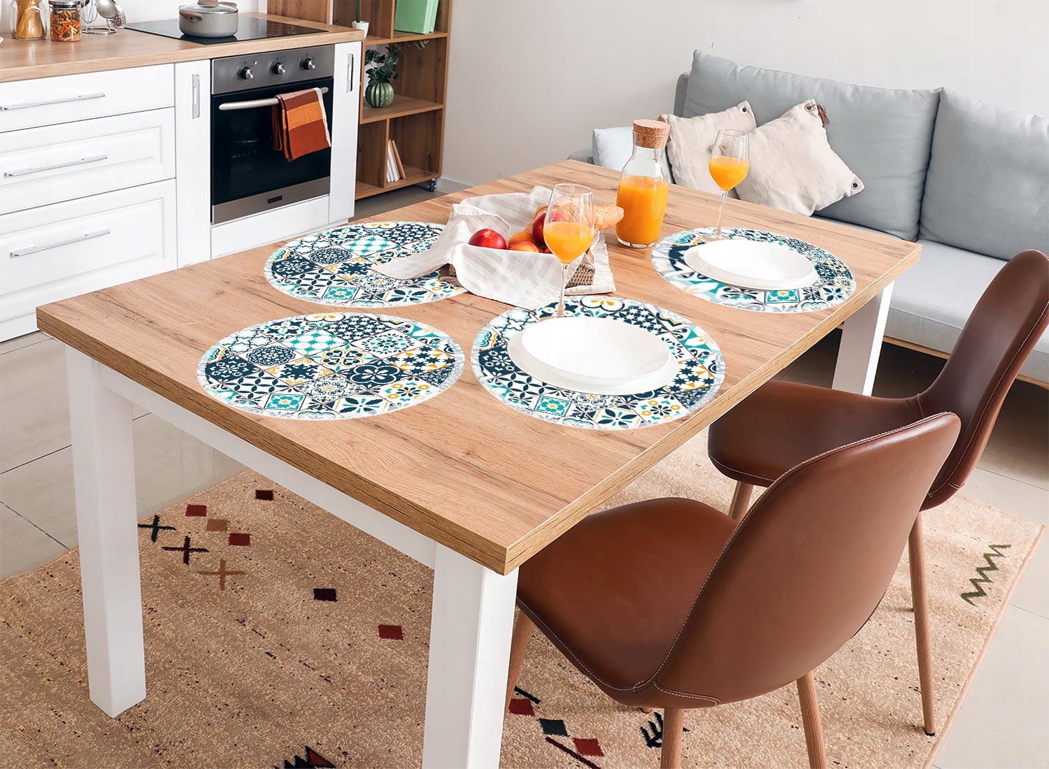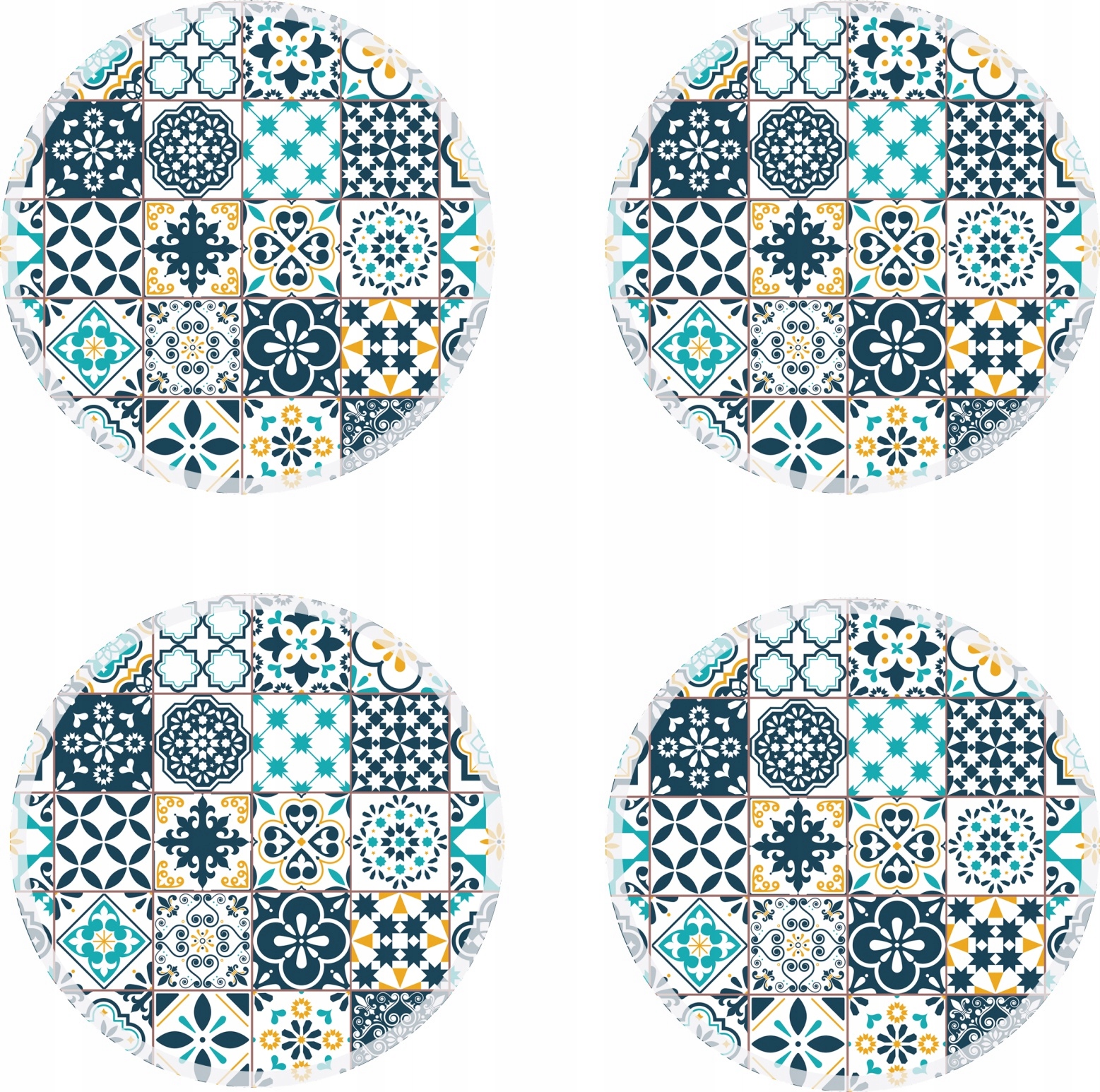 Набор из 4 прочных, моющихся виниловых ковриков с принтом, каждый диаметром 36 см