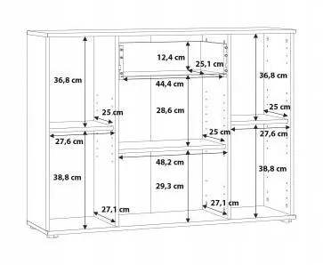 Внутри шкафа есть штанга, полка и два ящика. Комод оборудован выдвижным ящиком и тремя шкафчиками с полками внутри. В комплект НИКО 12 входят НИКС81 и НИКК35.