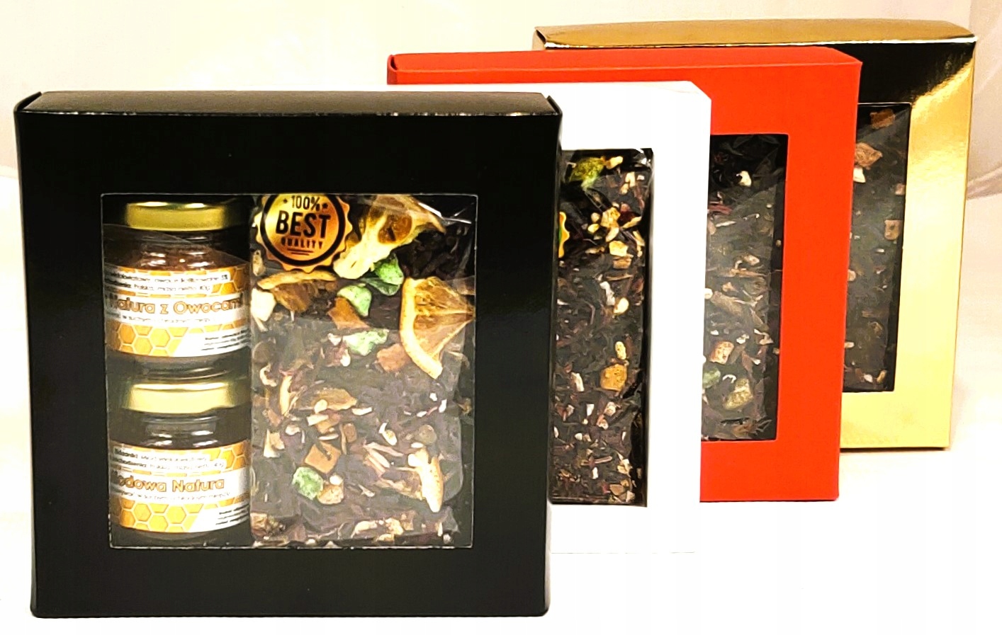 ZESTAW PREZENTOWY HERBATA owocowa + 2MIODY naturalne