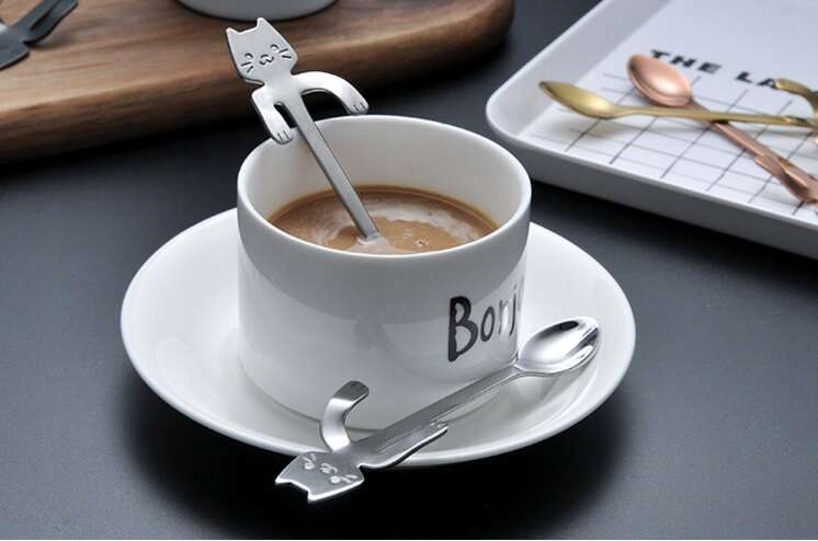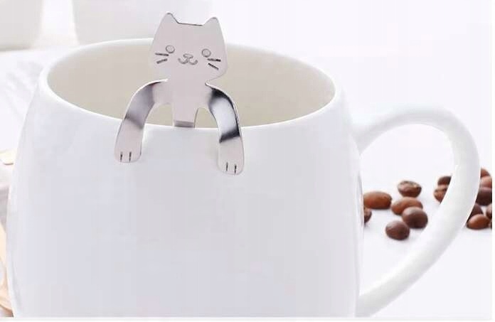 ZESTAW PREZENTOWY KOCIA SZKLANKA + ŁYŻKI ŁYŻECZKI KOTKI SREBRNE DLA KOCIARY