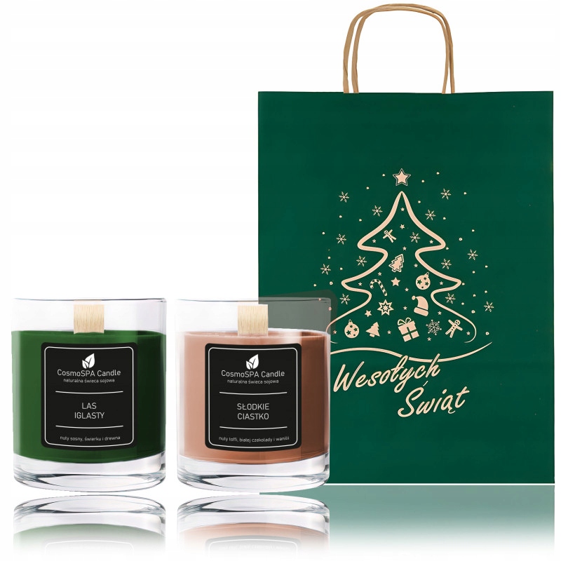 ZESTAW PREZENTOWY ŚWIĄTECZNY ŚWIEC SOJOWYCH LAS IGLASTY CIASTKO PIERNIK