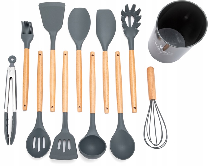 ZESTAW PRZYBORÓW KUCHENNYCH PRZYBORY KUCHENNE SILIKONOWE DREWNIANE 12 EL