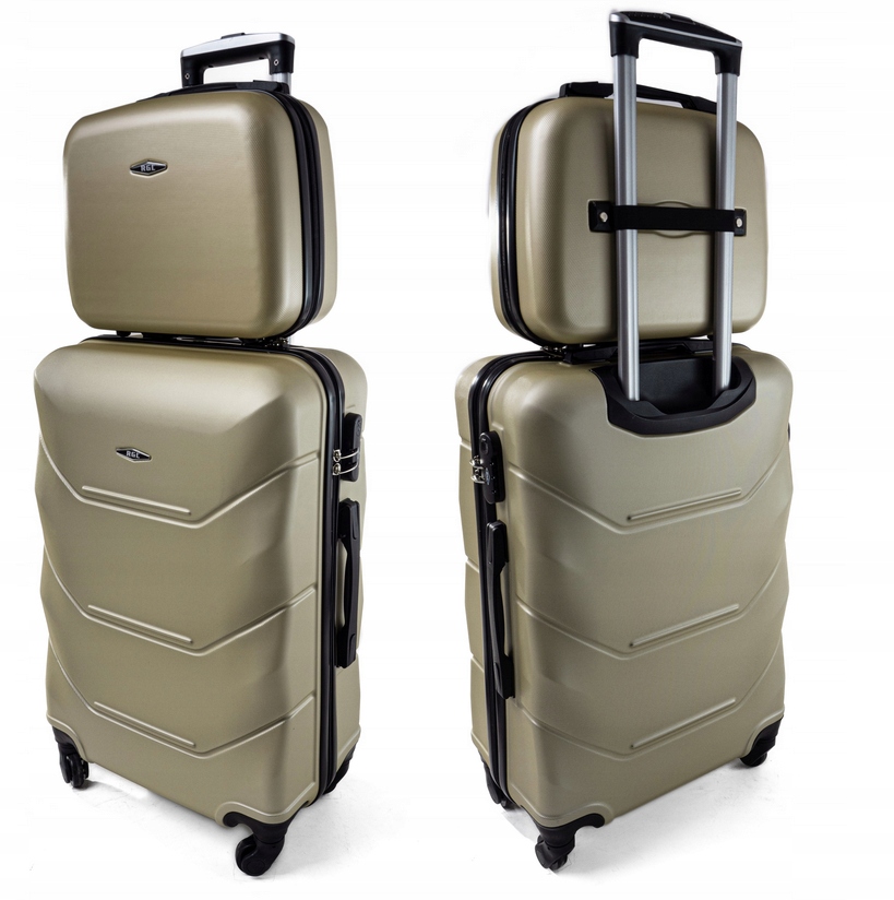 ZESTAW ŚREDNIA WALIZKA PODRÓŻNA + KUFEREK ABS RGL SZAMPAN