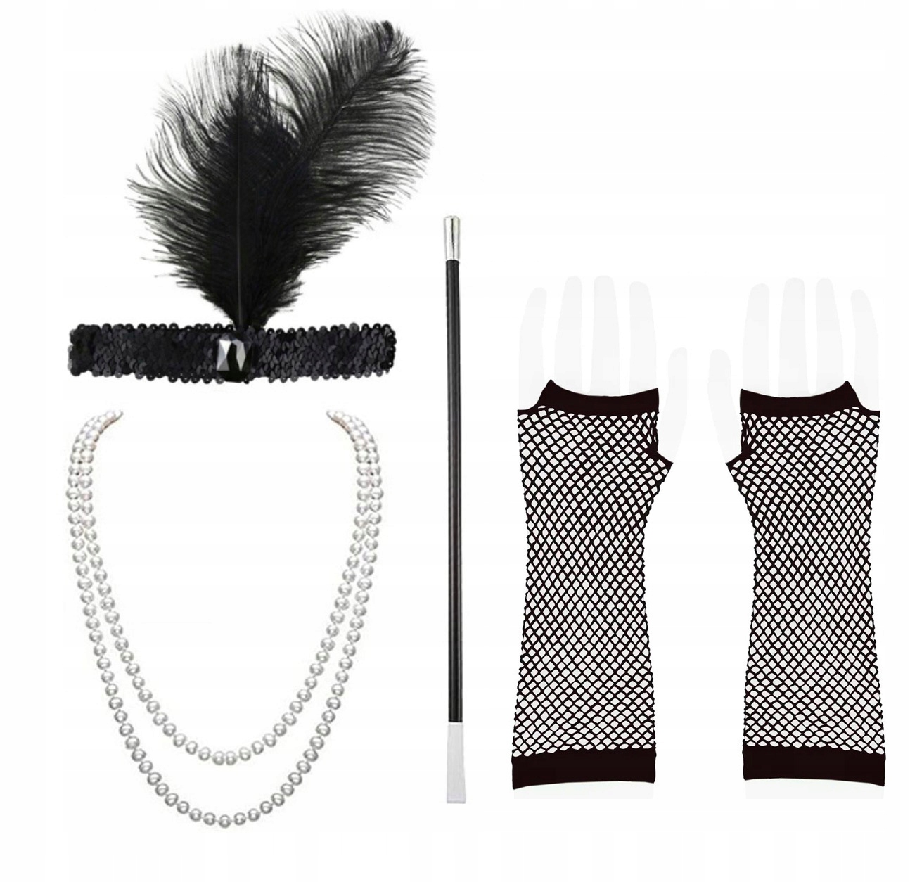 ZESTAW RETRO OPASKA PERŁY RĘKAWICZKI Z SIATKI CYGARETKA