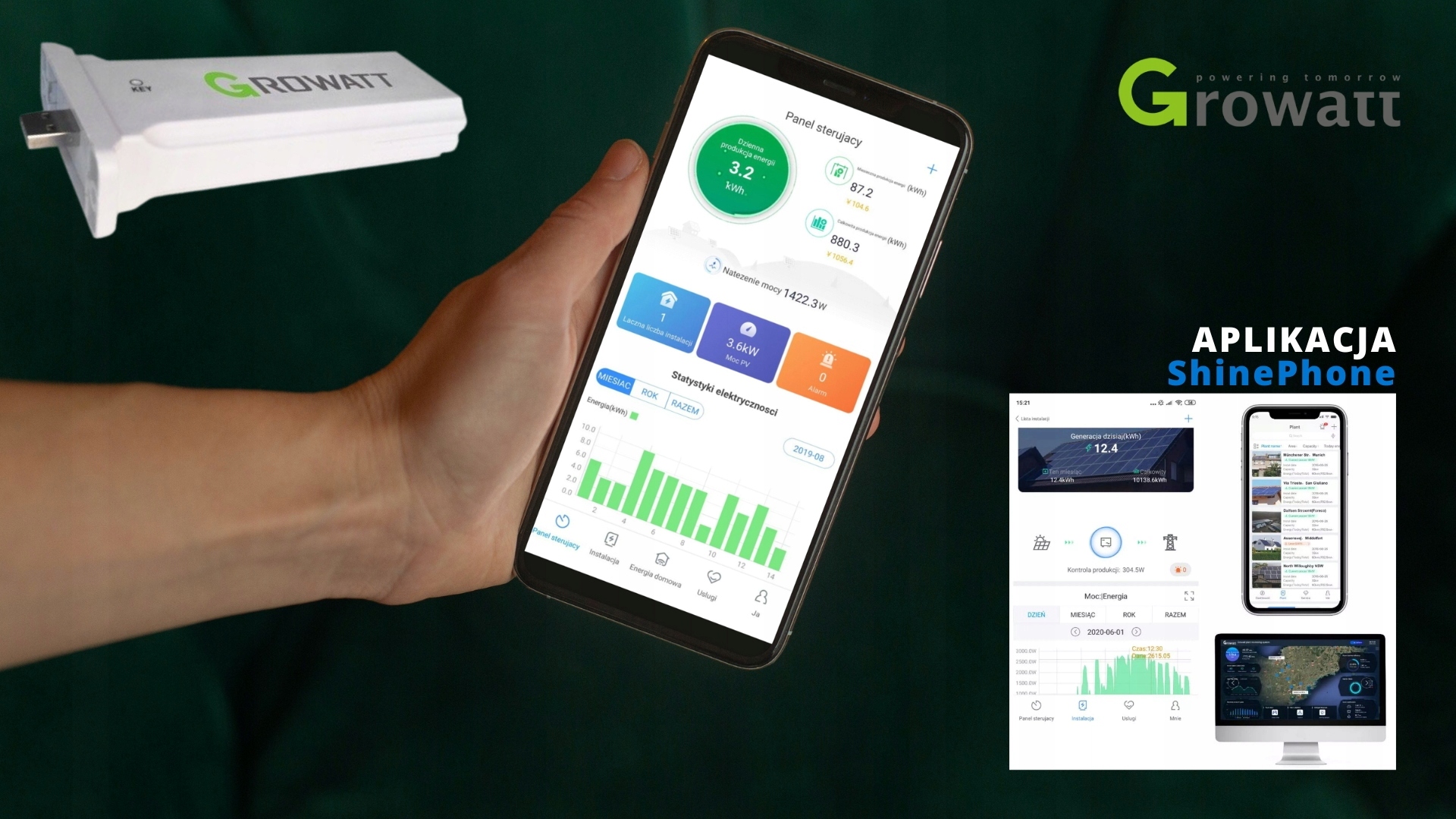 - Growatt ShinePhone — полностью польский интерфейс обеспечивает удаленный доступ к данным фотоэлектрической установки в любом месте и в любое время. Информация о работе установки отправляется на сервер каждые 5 минут.