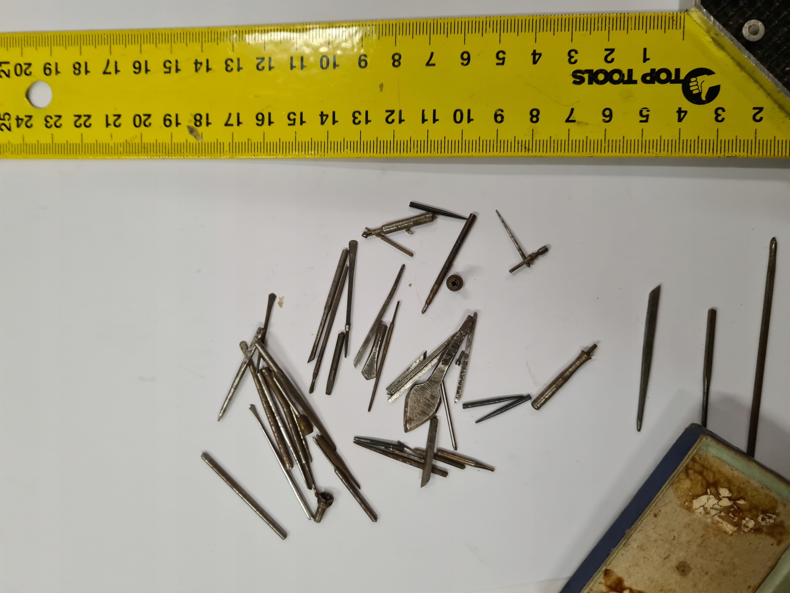 Набор старых мини-часовых инструментов, старая коробка от часов.
