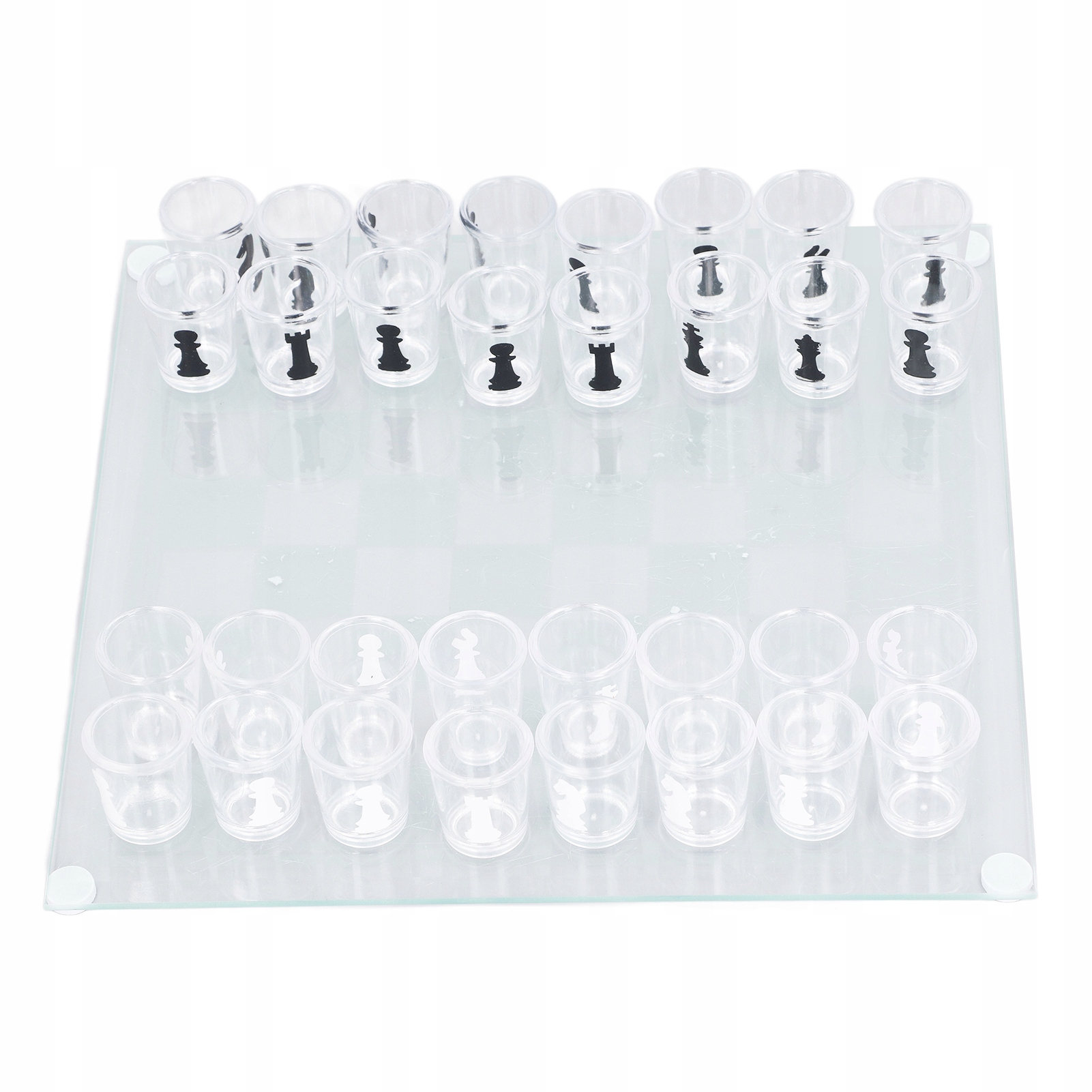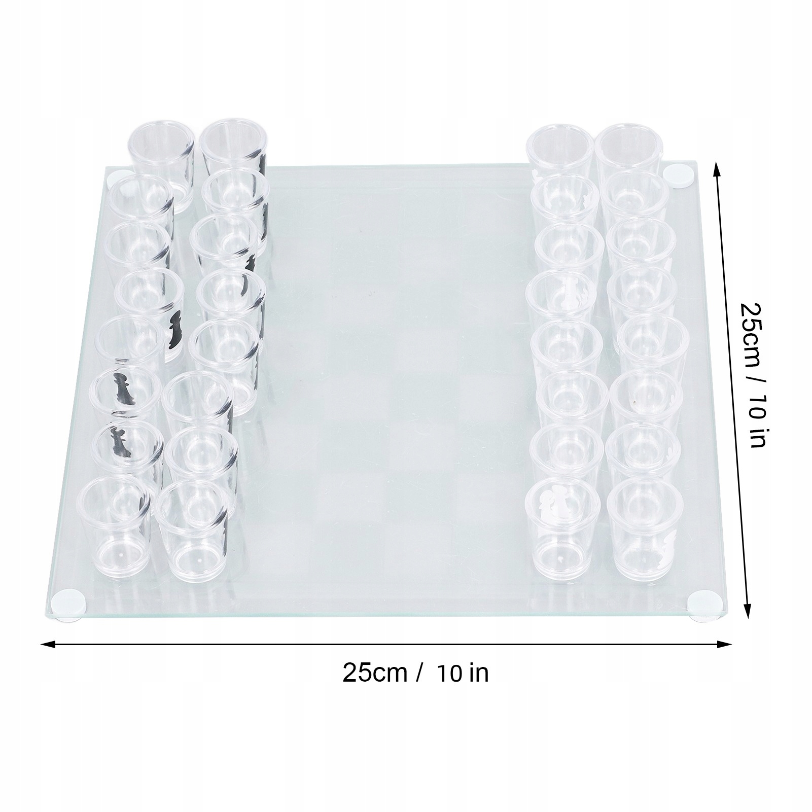 Набор шахматных рюмок Набор для питьевой игры Шахматная доска с шахматными фигурами из закаленного стекла 22,5 х 22,5 см