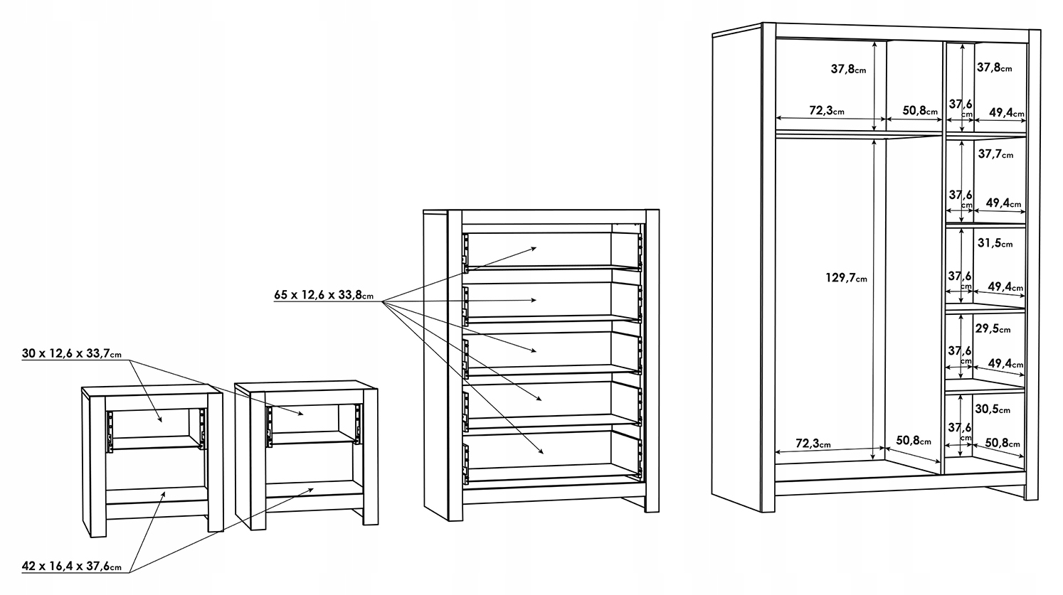 Zestaw szafa trzydrzwiowa + komoda z szufladami + szafki nocne RIO 4, FORTE