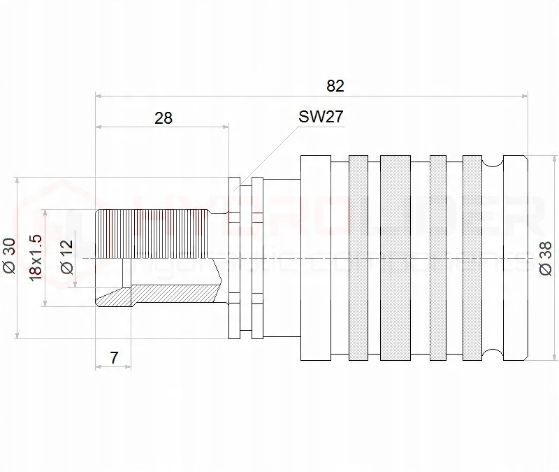 Резьба со стороны троса: внешняя метрическая 18х1,5