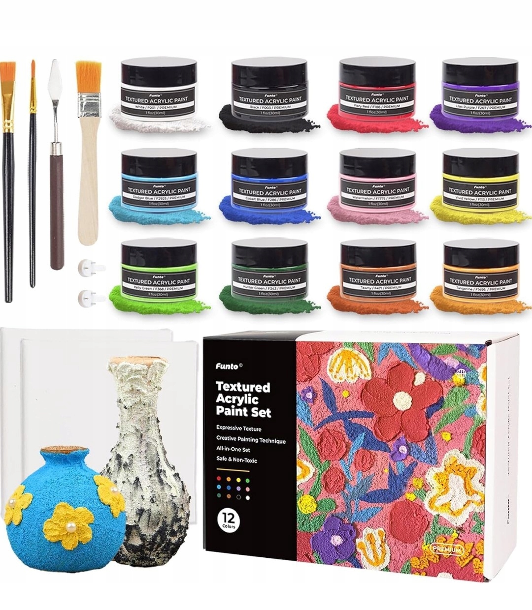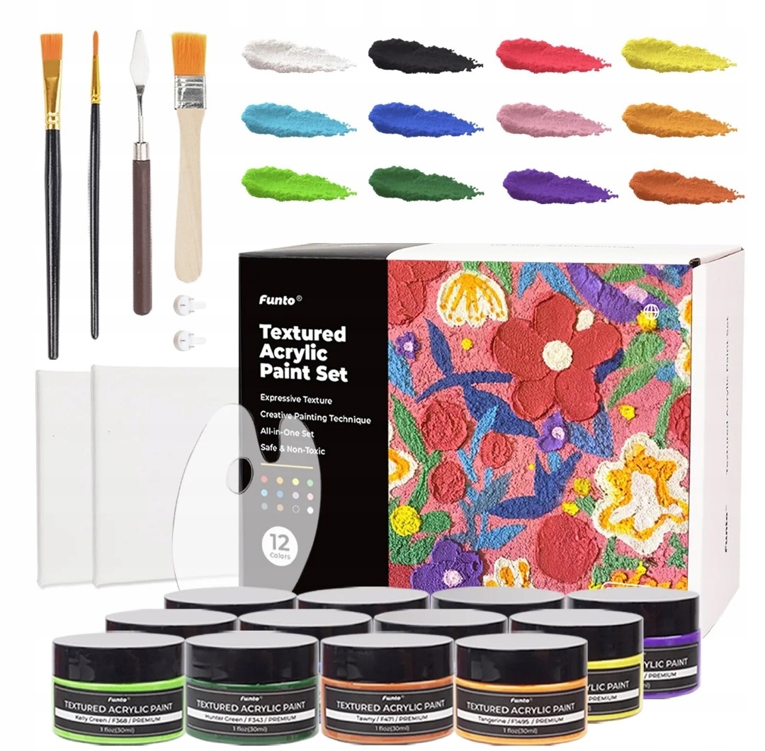 Zestaw teksturowanych farb akrylowych Funto,z narzędziami,płótnami,12 kolor