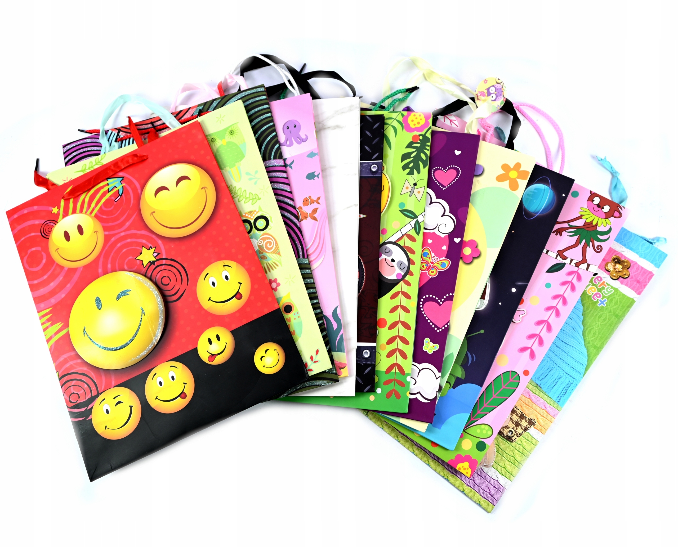 ZESTAW TOREBEK PREZENTOWYCH DUŻA TORBA URODZINOWA 30x40CM 12SZT