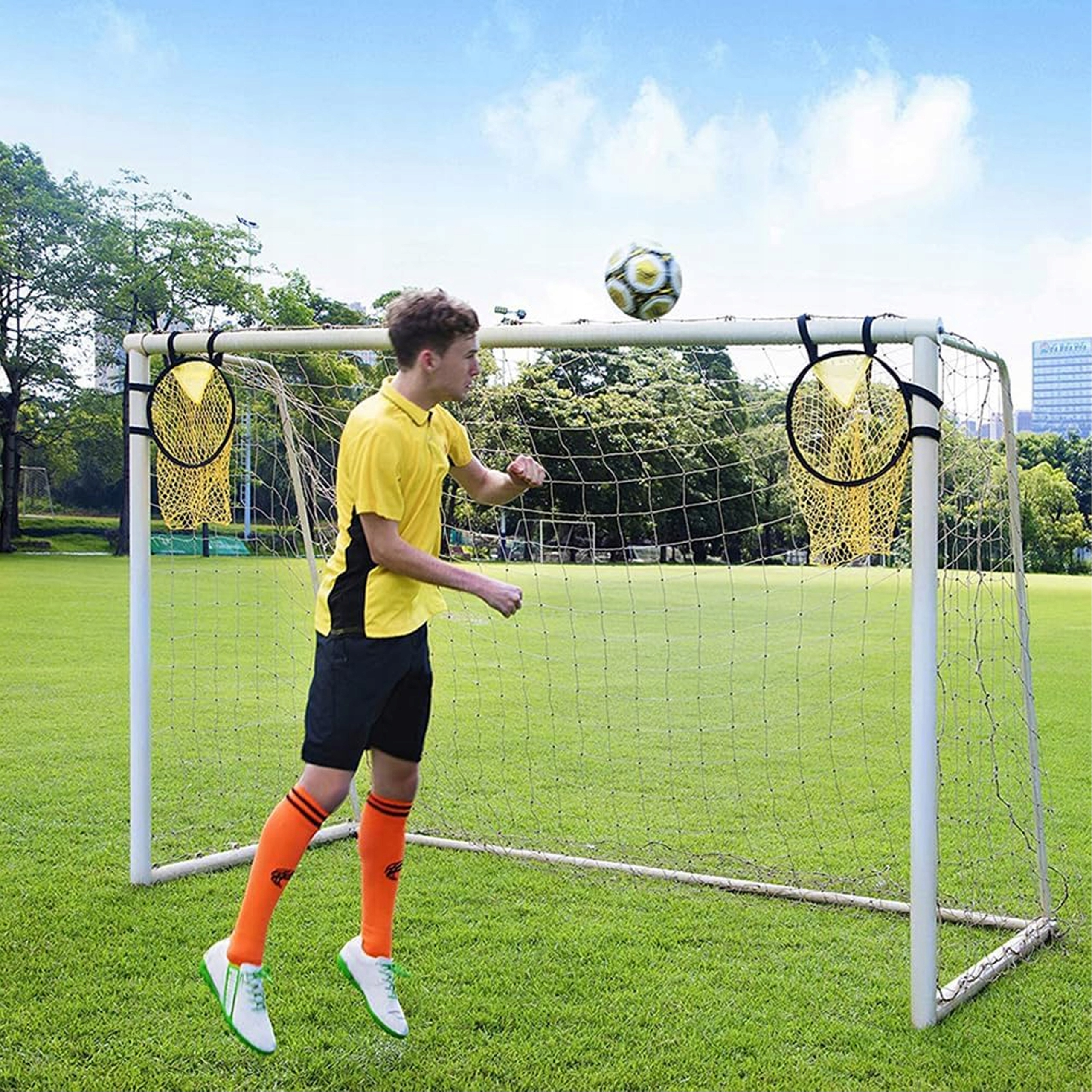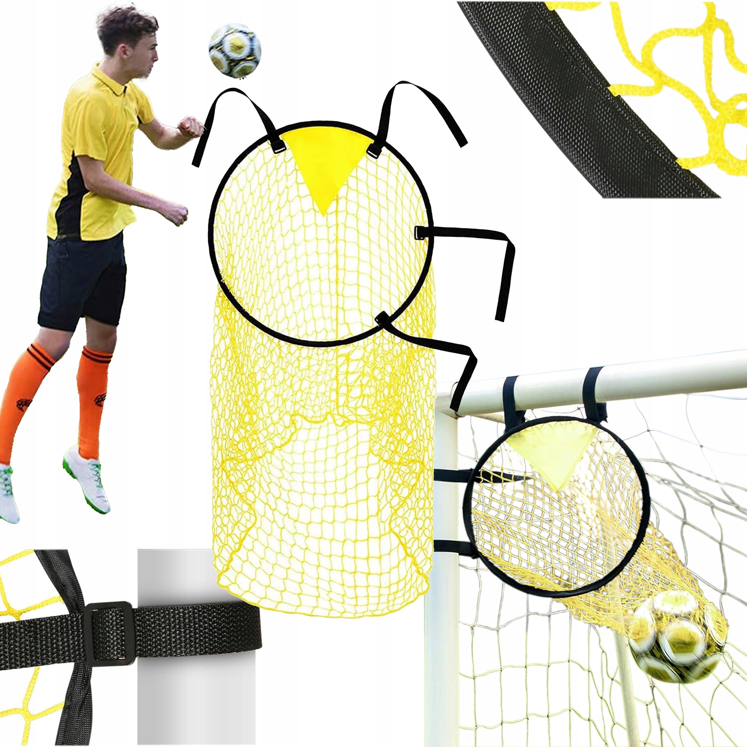 Высоко -качественное сетка, которую можно легко прикрепить к любой стандартной раме к футбольным воротам, ветви деревьев или луча террасы , используя полосу липучки, для улучшения ваших навыков стрельбы.