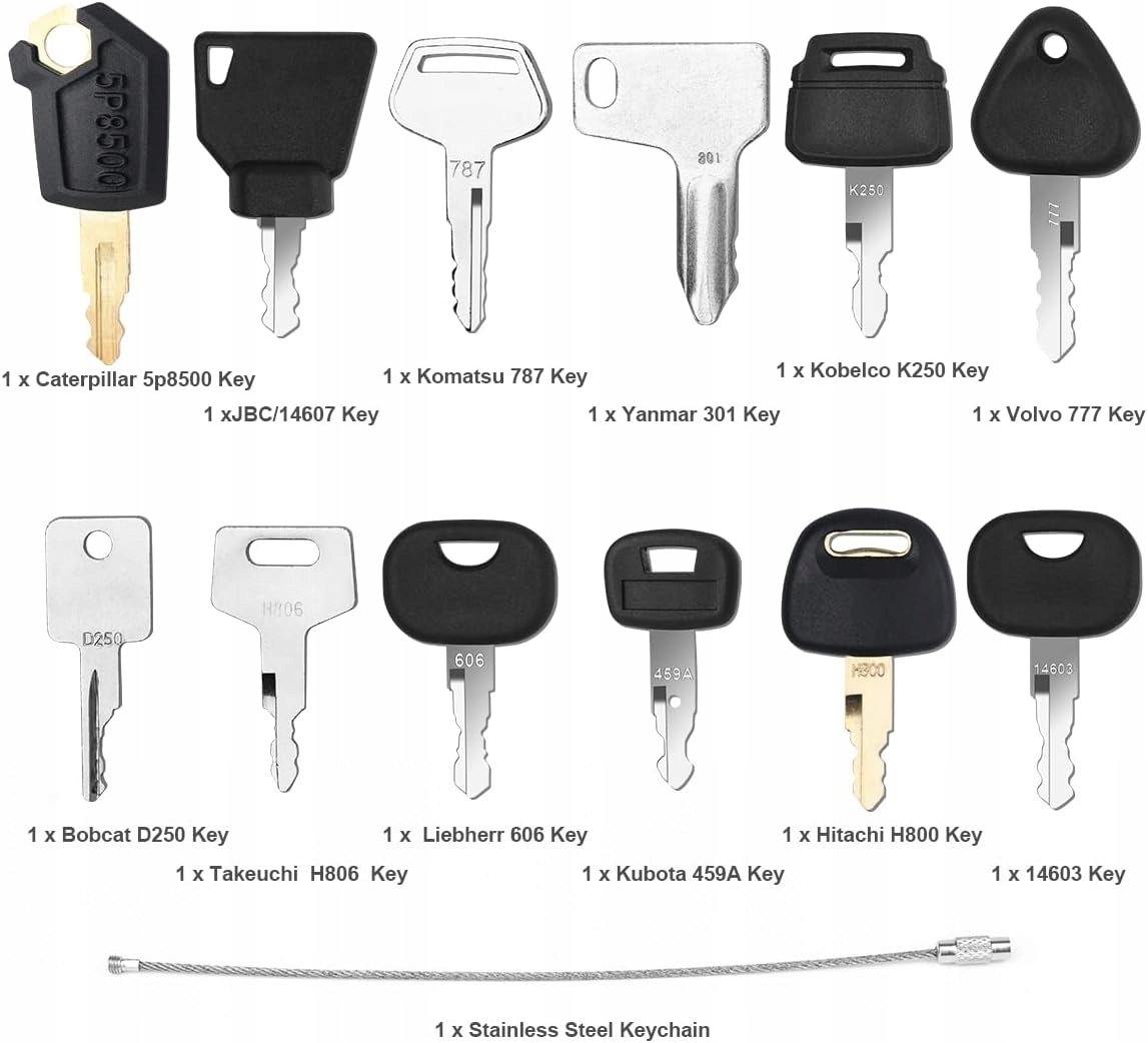 В комплект входит набор из 12 ключей и брелок, который удобно носить с собой. Каждый ключ имеет номер модели, который удобно найти и практичный, и его можно заменить напрямую.