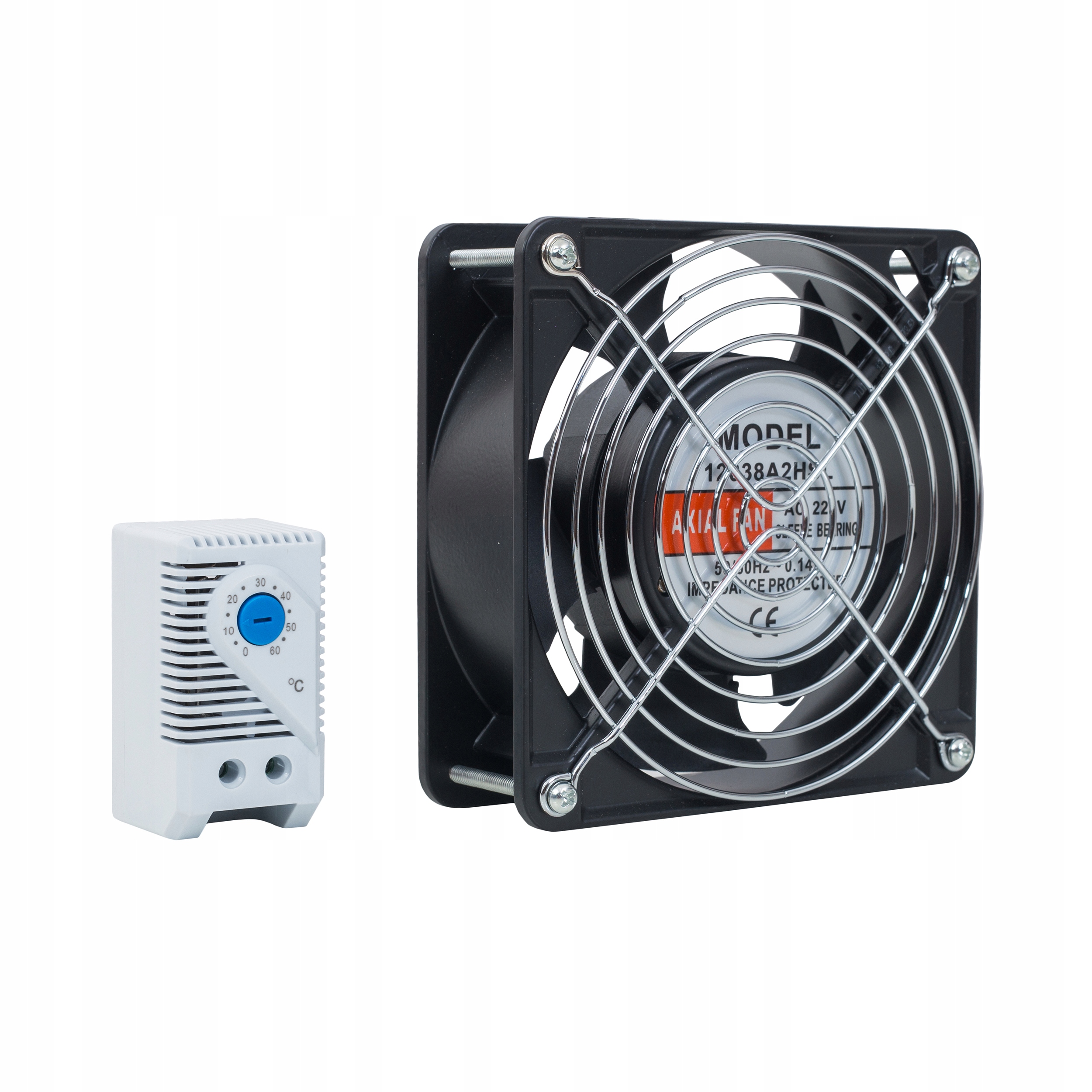 ВЕНТИЛЯТОР С ТЕРМОСТАТОМ ДЛЯ СТОЙОЧНОГО ШКАФА 230 В, 120 x 120 x 38 мм, AXIAL/KTS-011