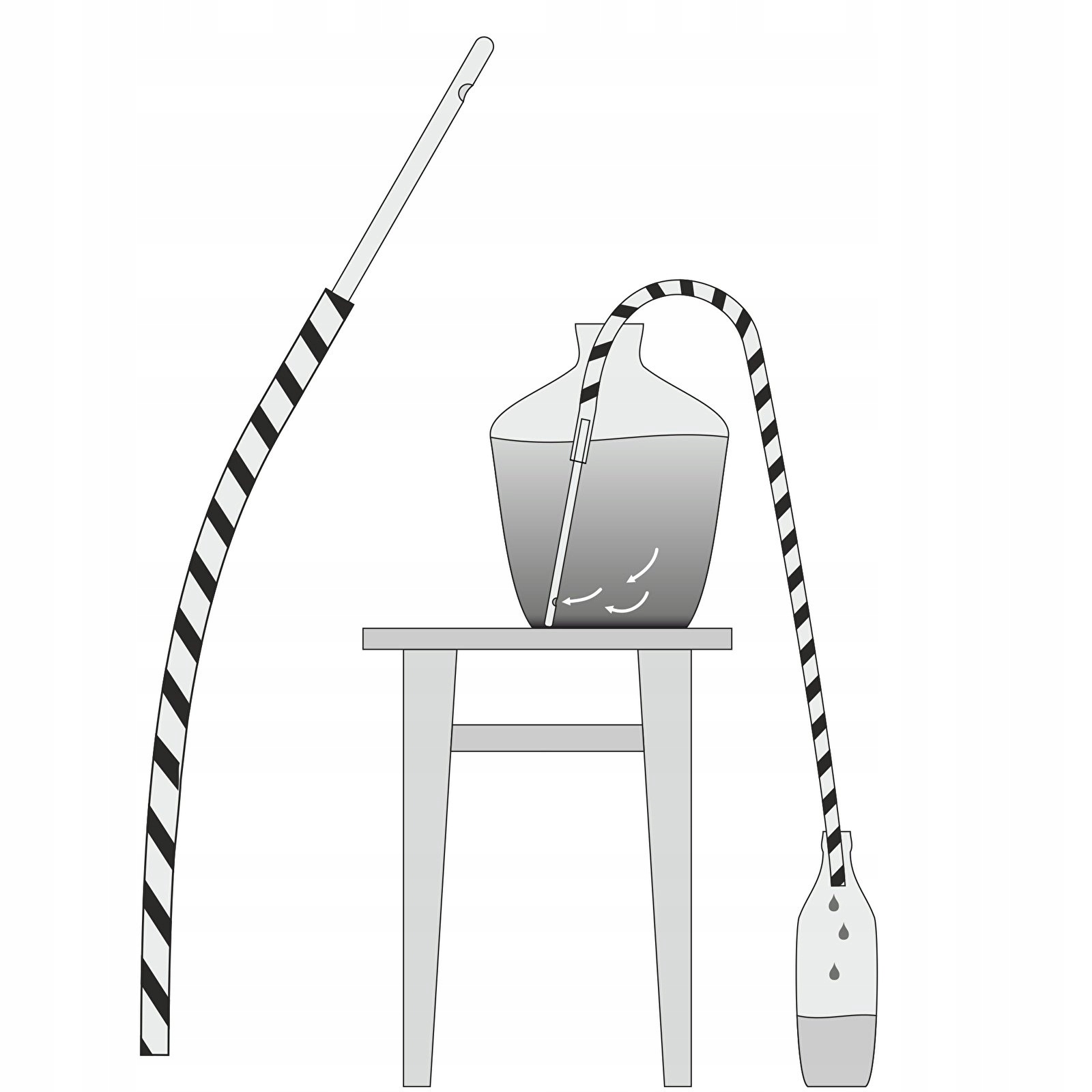 Баллон, из которого наливается жидкость, должен располагаться на большей высоте, чем ресивер. Шланг следует промывать горячей водой каждый раз перед использованием. Это предотвратит инфекции и облегчит правильное формирование трубы.