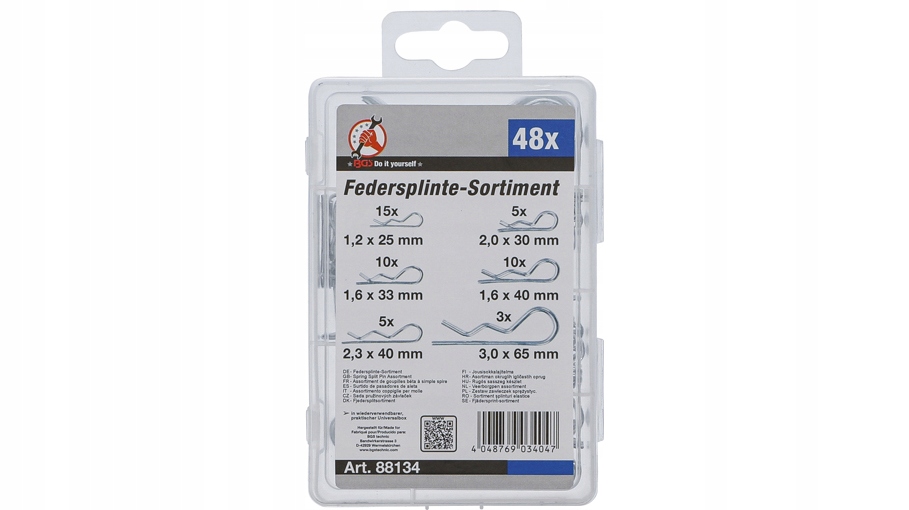 Zestaw zawleczek sprężystych zawleczki sprężynowe 1,2 - 3,0 mm 48szt BGS