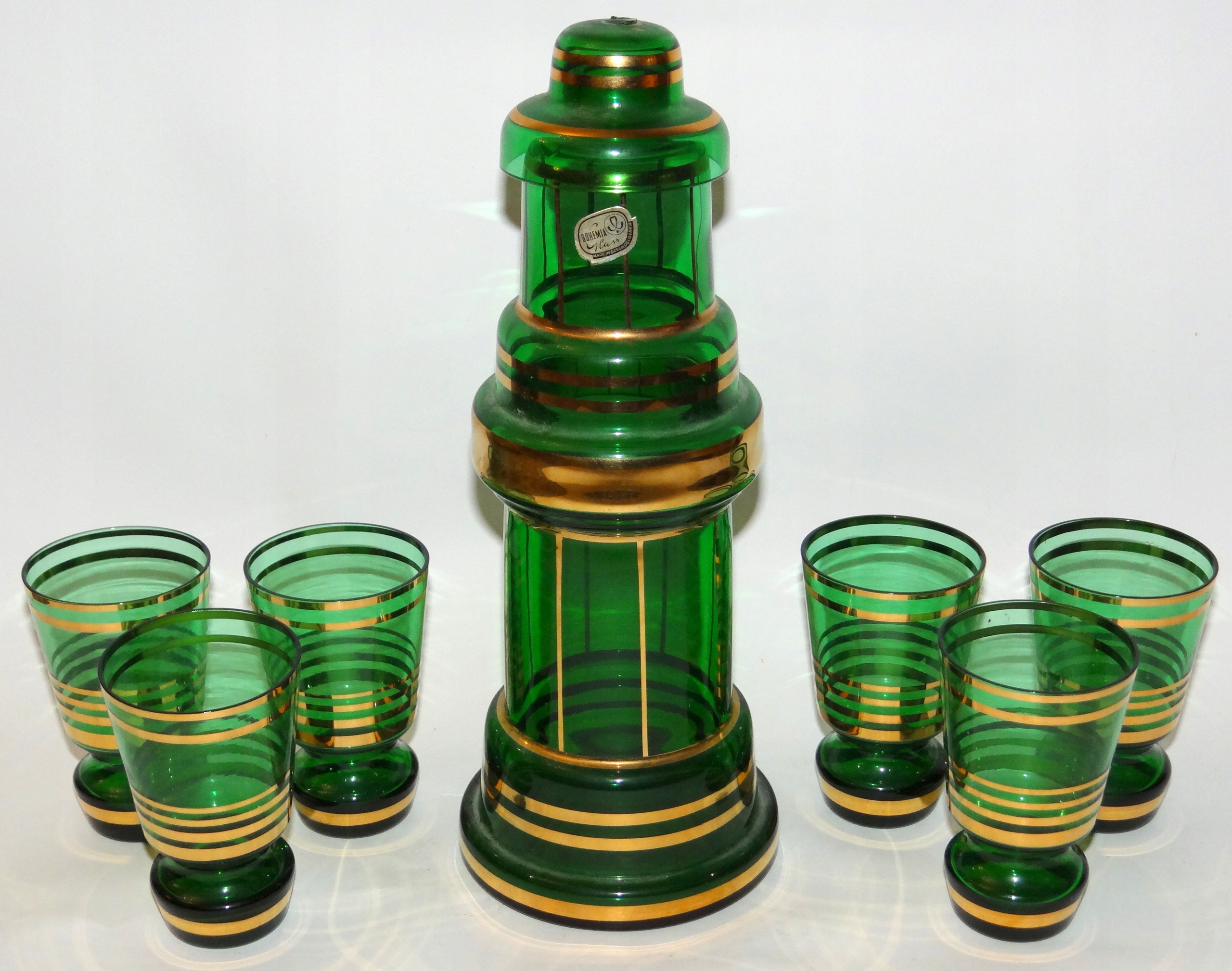 ZESTAW ZIELONA KARAFKA KIELISZKI BOHEMIA