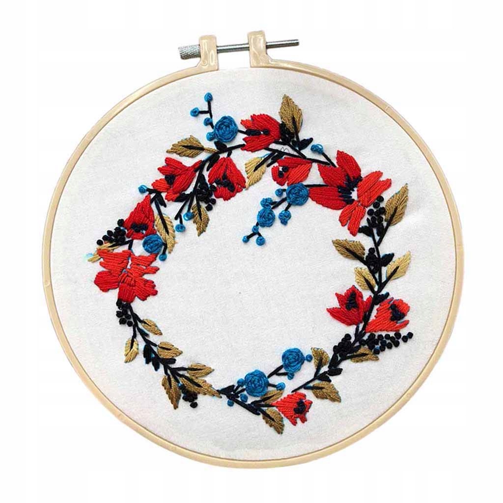 В комплект входит: канва для вышивания с принтом, нитки 2 шт., круглые пяльцы.