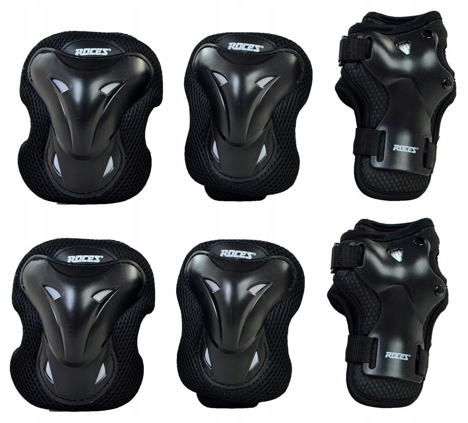 Защитные устройства для роликовых коньков Roces для коленей, локтей и запястий, вентилируемые JR 3-PACK 301352 01, черные