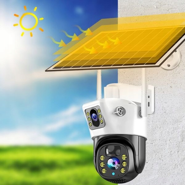 Zewnętrzna kamera solarna WIFI 4K HD podwójny obiektyw 8MP aplikacja