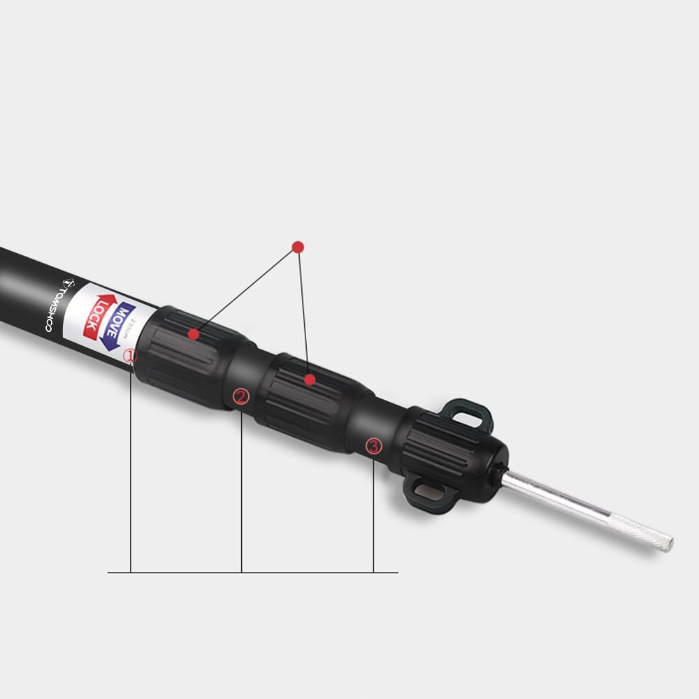 - 🌠 Размер: Наружные диаметры 3-х секций алюминиевой трубы: 1 внешний диаметр 29 мм, 2 внешних диаметра 25,5 мм, 3 внешних диаметра 22,2 мм.