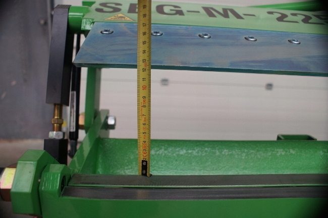 - Наш станок открывается одним рычагом, поднимая всю верхнюю балку на 65 мм вверх. Однако другие станки, например, западных марок и китайские, открываются двумя ручками, т.е. отдельно с левой и отдельно с правой стороны, что существенно усложняет работу листообработчика!!!
