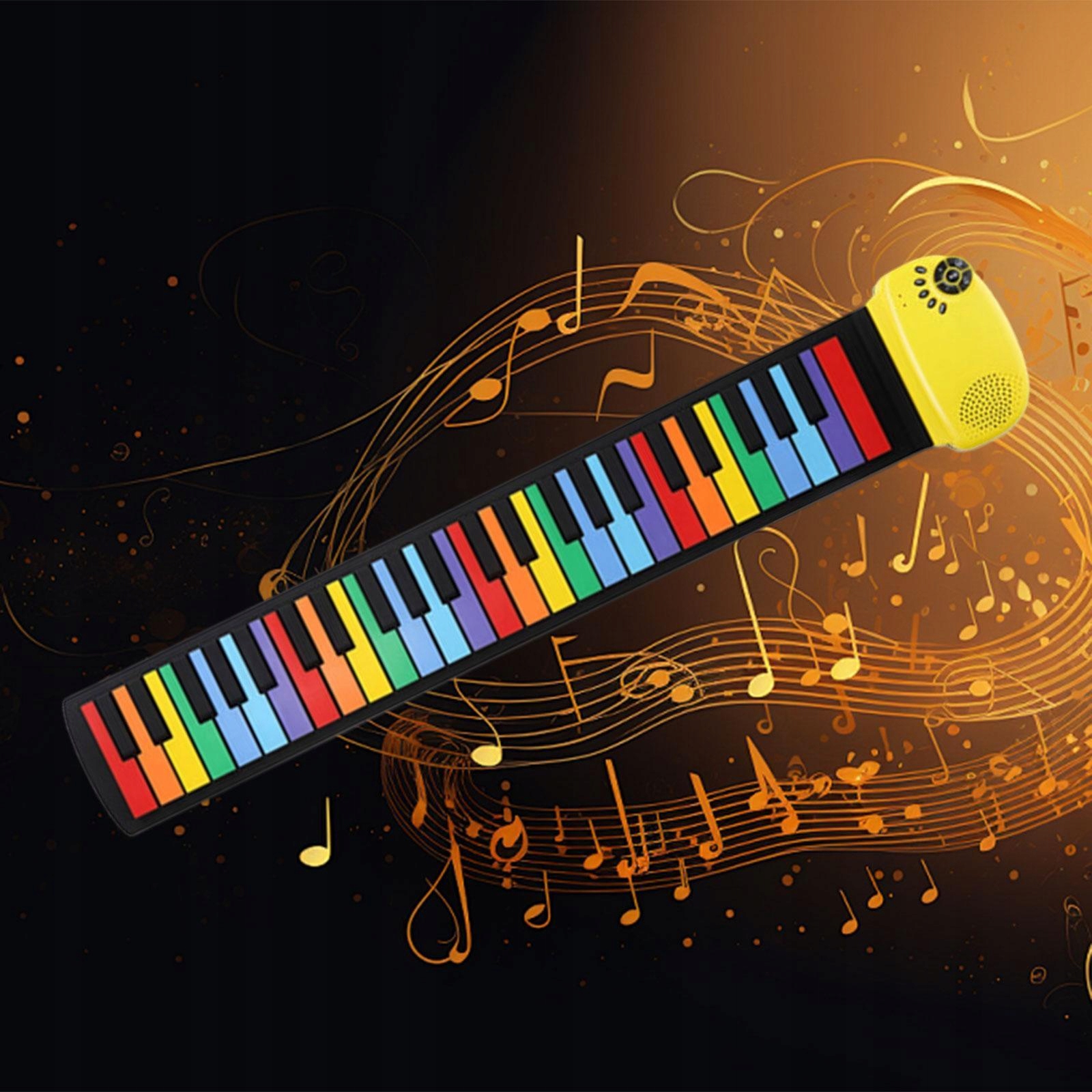 Свернутая клавиатура фортепиано, 49 клавиш, свернутая вручную для детей, взрослых, детей, для начинающих, радужный ключ, желтый