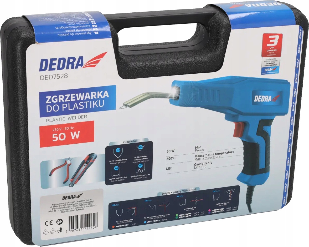 Zgrzewarka do plastiku DEDRA moc 50W max temp. 500 stopni zszywki 4x100 szt + FIGOT NAKLEJKA Z LOGOTYPEM