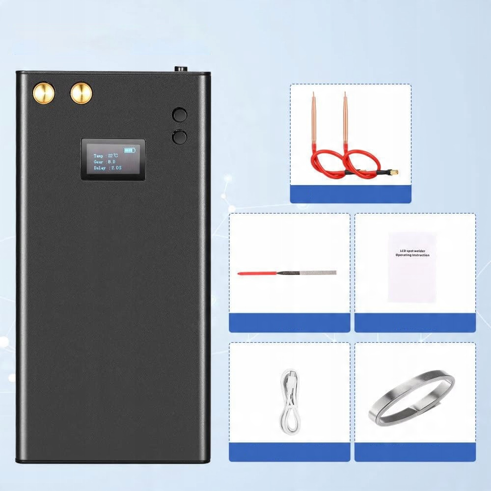 Этот мини-аппарат для точечной сварки оснащен встроенным аккумулятором емкостью 7500 мАч, который можно полностью зарядить за 3 часа. Он может непрерывно сваривать тысячи точек после полной зарядки с максимальной выходной мощностью 650 А. Вы можете использовать его в качестве портативного аккумулятора для зарядки телефона и т. д., а цена его достаточно доступна для среднего любителя. Он красивый и маленький, поэтому его можно положить в сумку для инструментов, и он не займет много места.