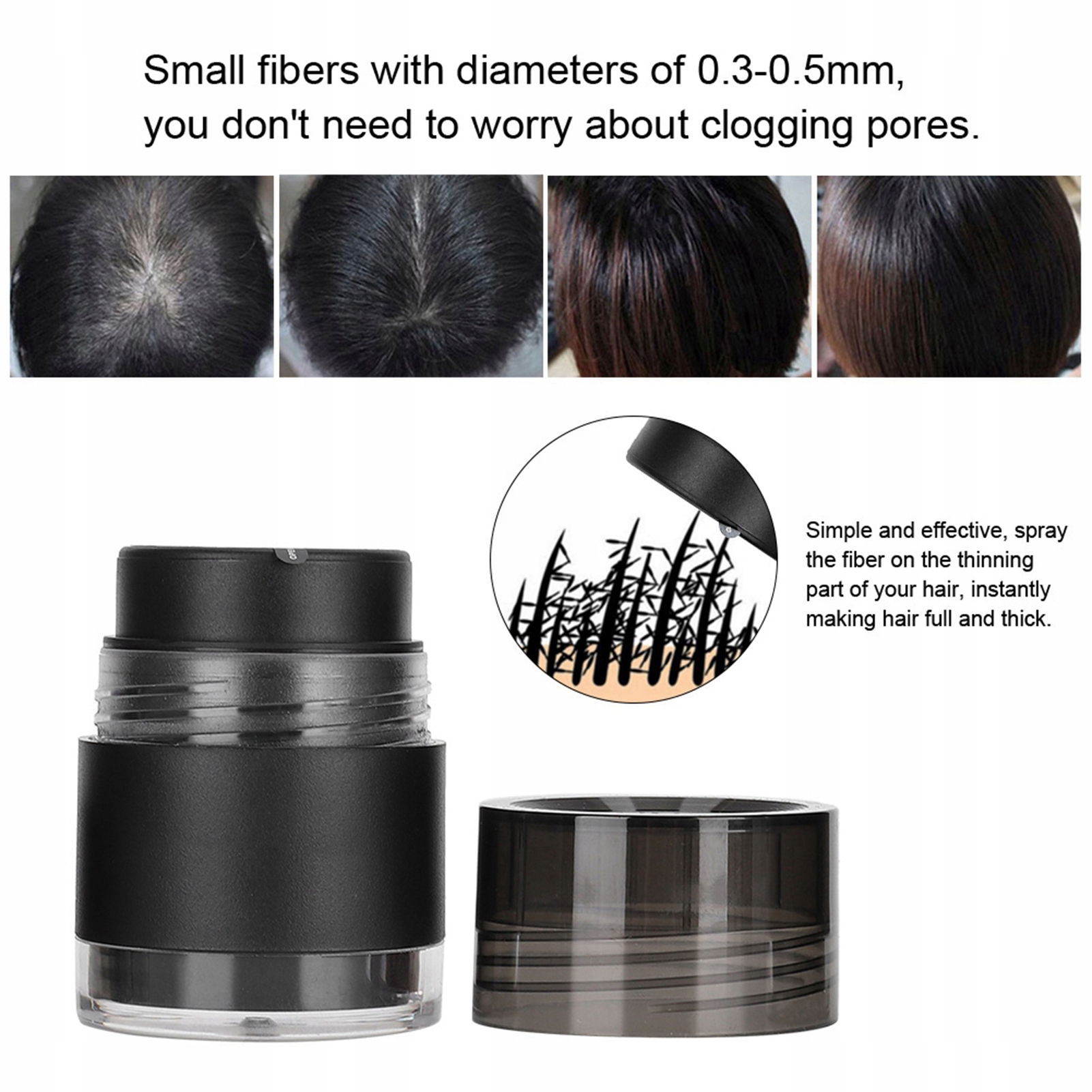 ⏺Просто и эффективно распылите волокно на редеющую часть волос, мгновенно утолщая и утолщая волосы.