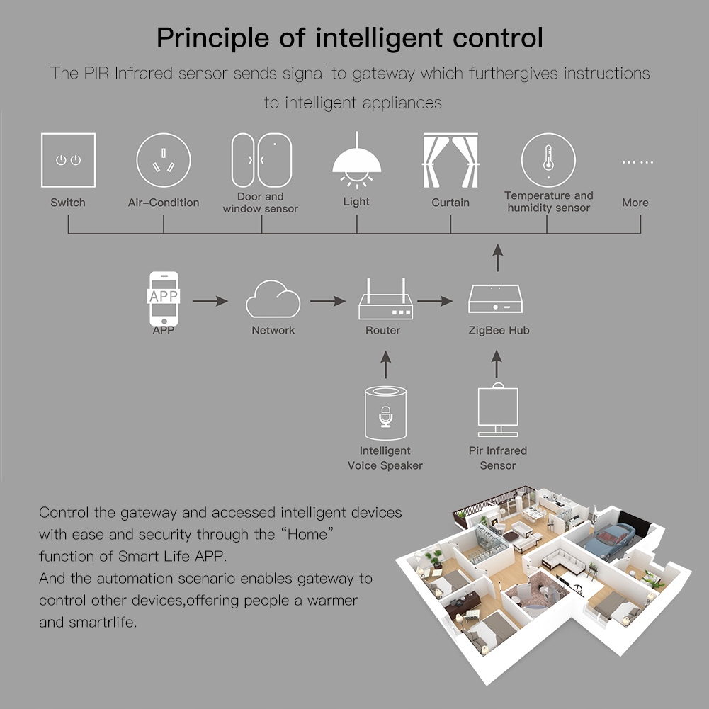 Интеллектуальный PIR датчик движения ZigBee Датчик движения человека Доступна конфигурация 2MQTT