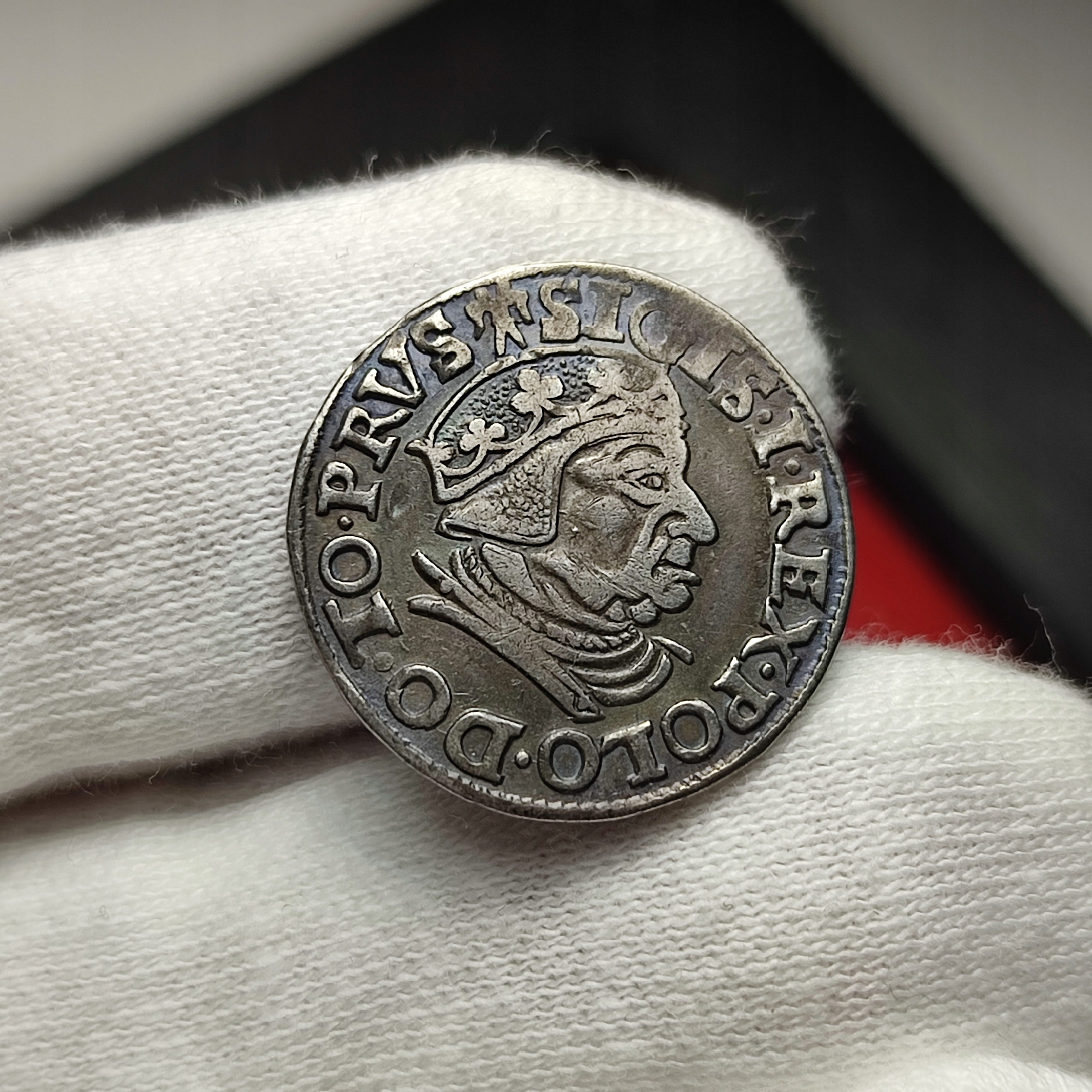 Красивый гданьский трояк Сигизмунда I Старого с финалом легенды ПРВС. Очень редкая вещь в таком состоянии. Офисная патина. Для требовательных коллекций.