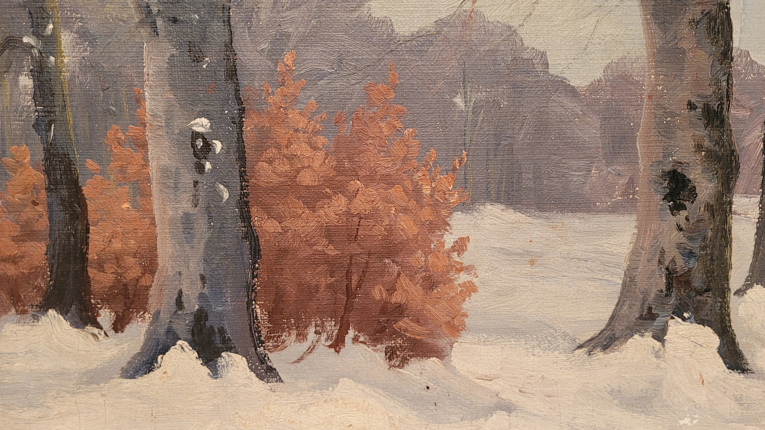 Предмет продажи - красивая, старинная картина маслом "ЗИМА 1934".