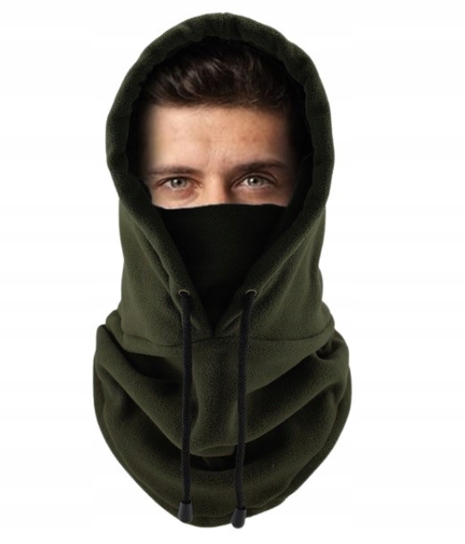 BACLAVALAVA ТЕРМОФЛИСОВЫЙ КАПЮШОН С ТЕПЛОЙ МАСКОЙ С КАПЮШОНОМ МНОГОФУНКЦИОНАЛЬНЫЙ ШАРФ ЗЕЛЕНЫЙ