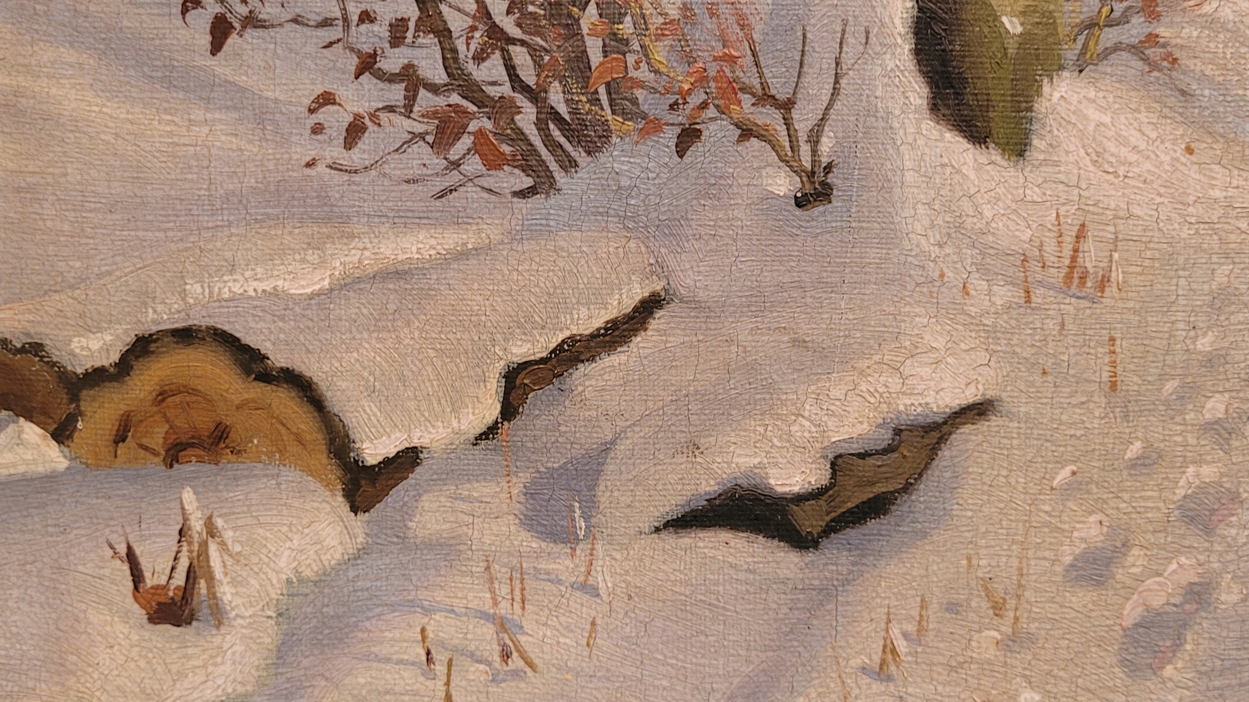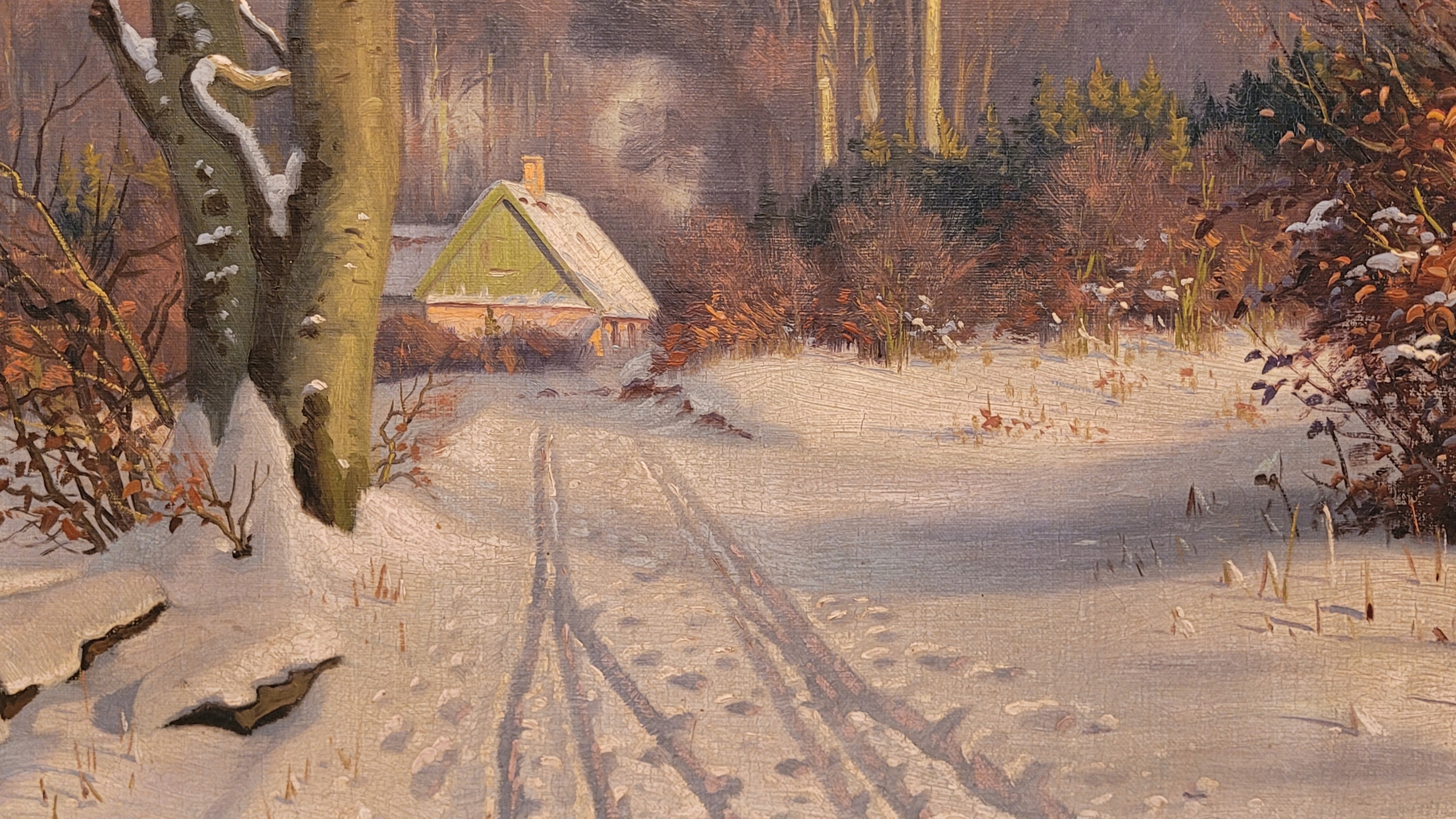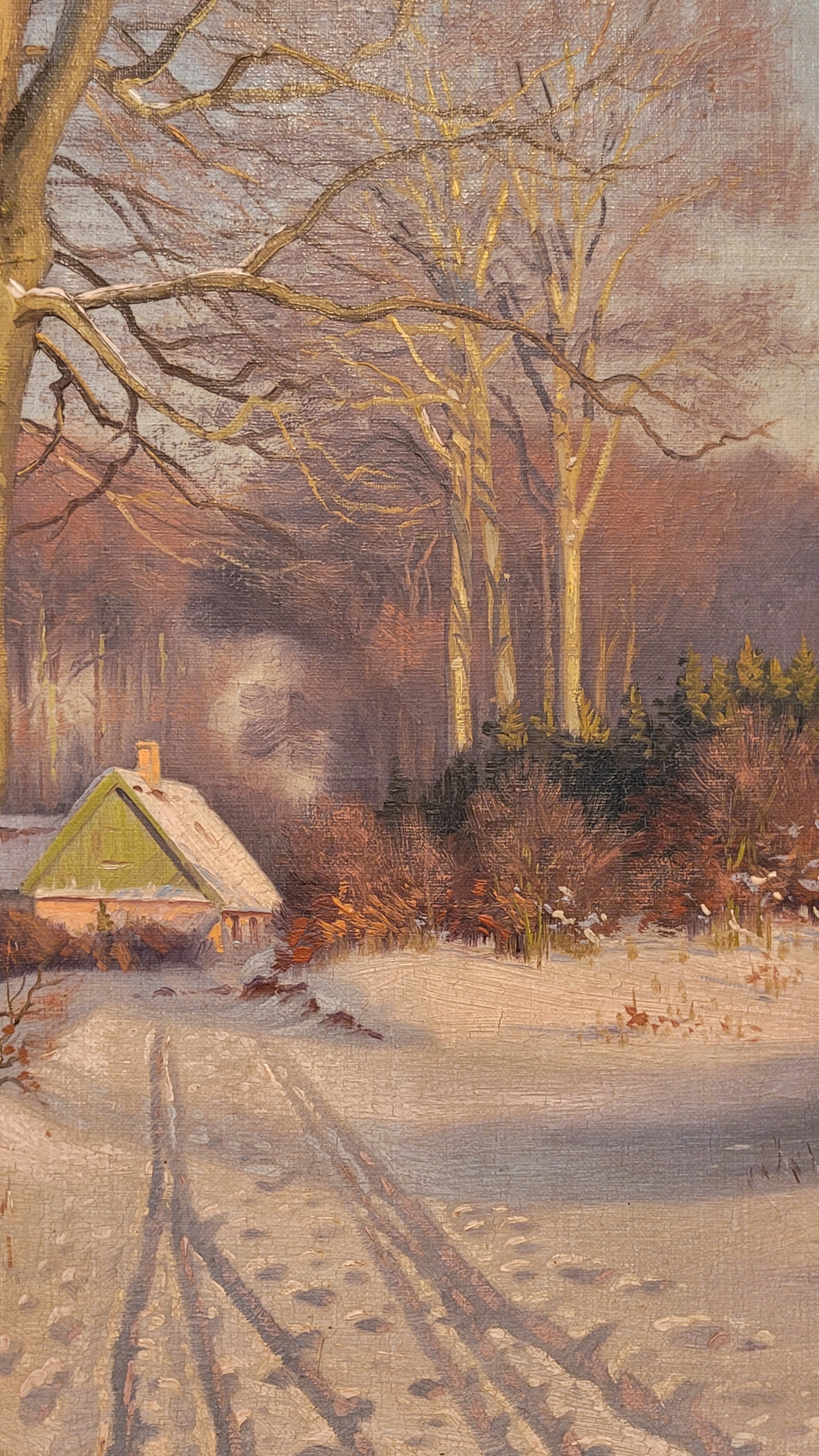 «Зима в лесу», старая нефтяная картина.