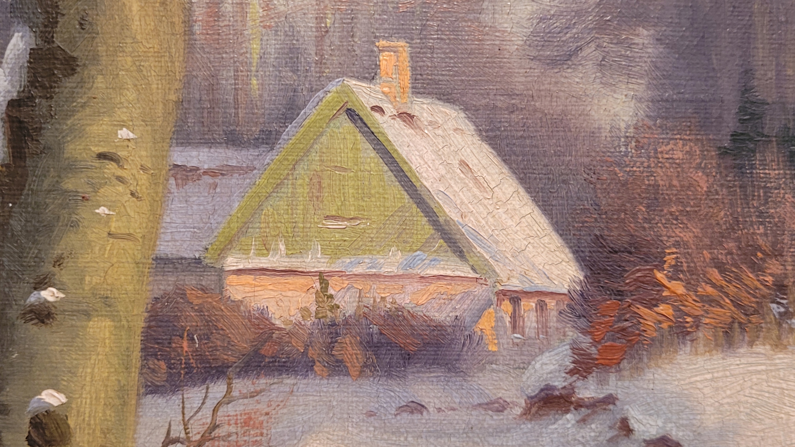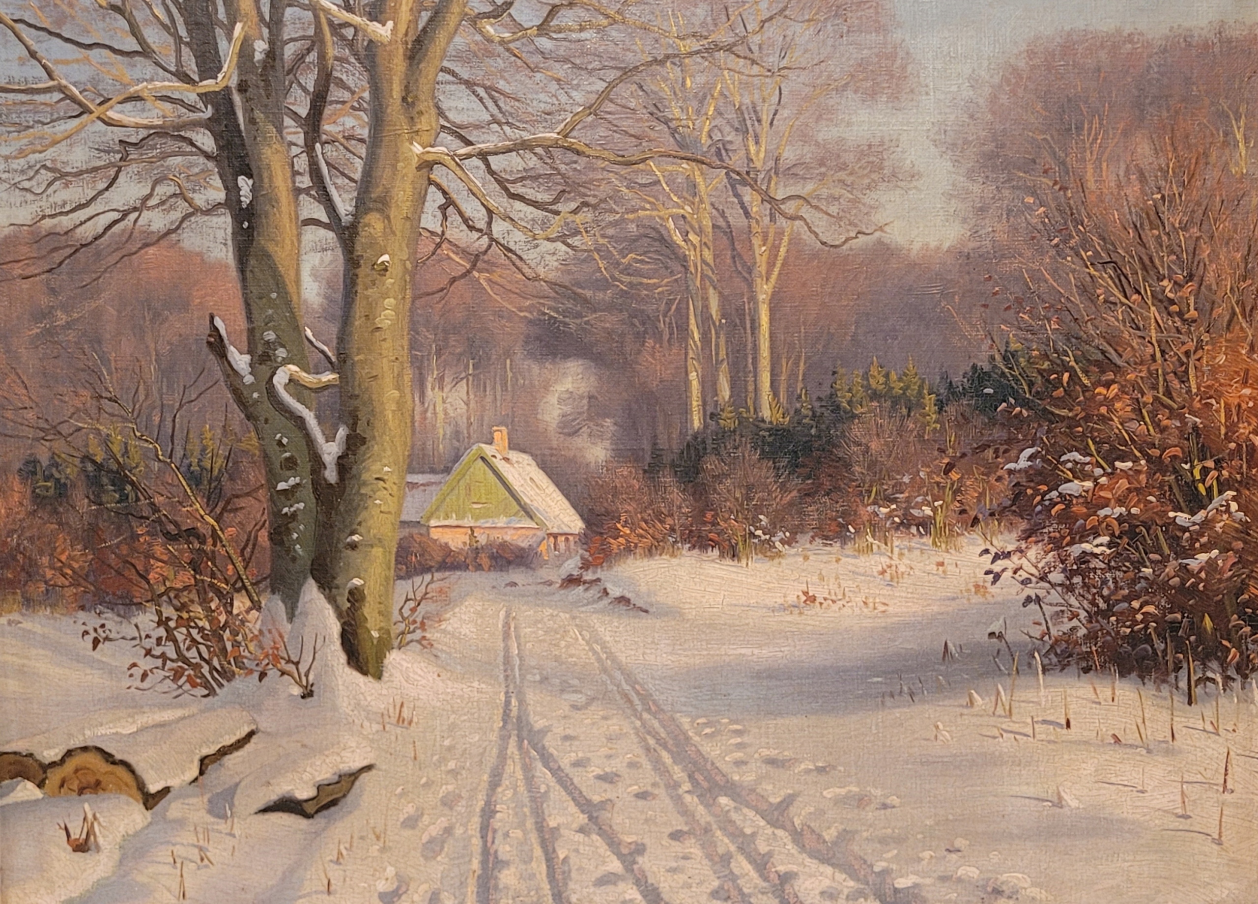 Тема продажи - прекрасная старая нефтяная картина «зима в лесу».