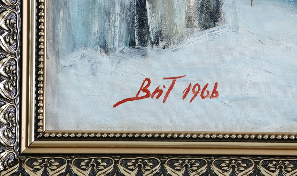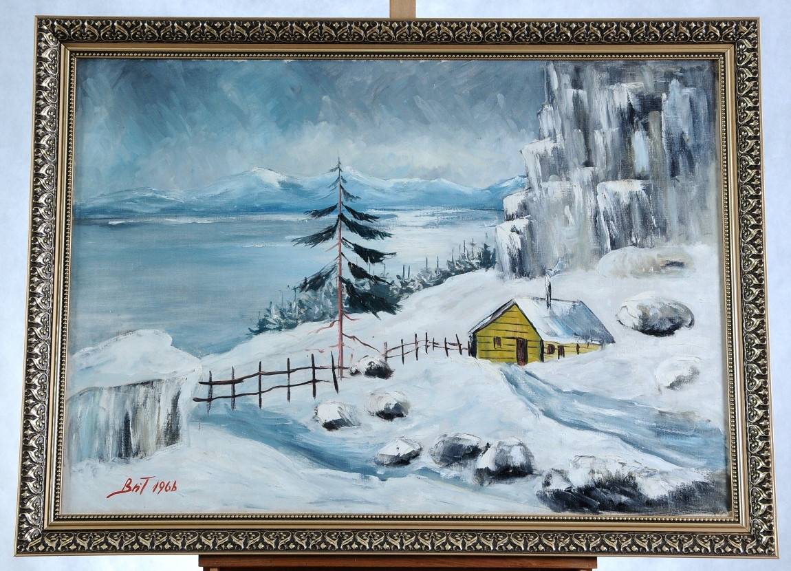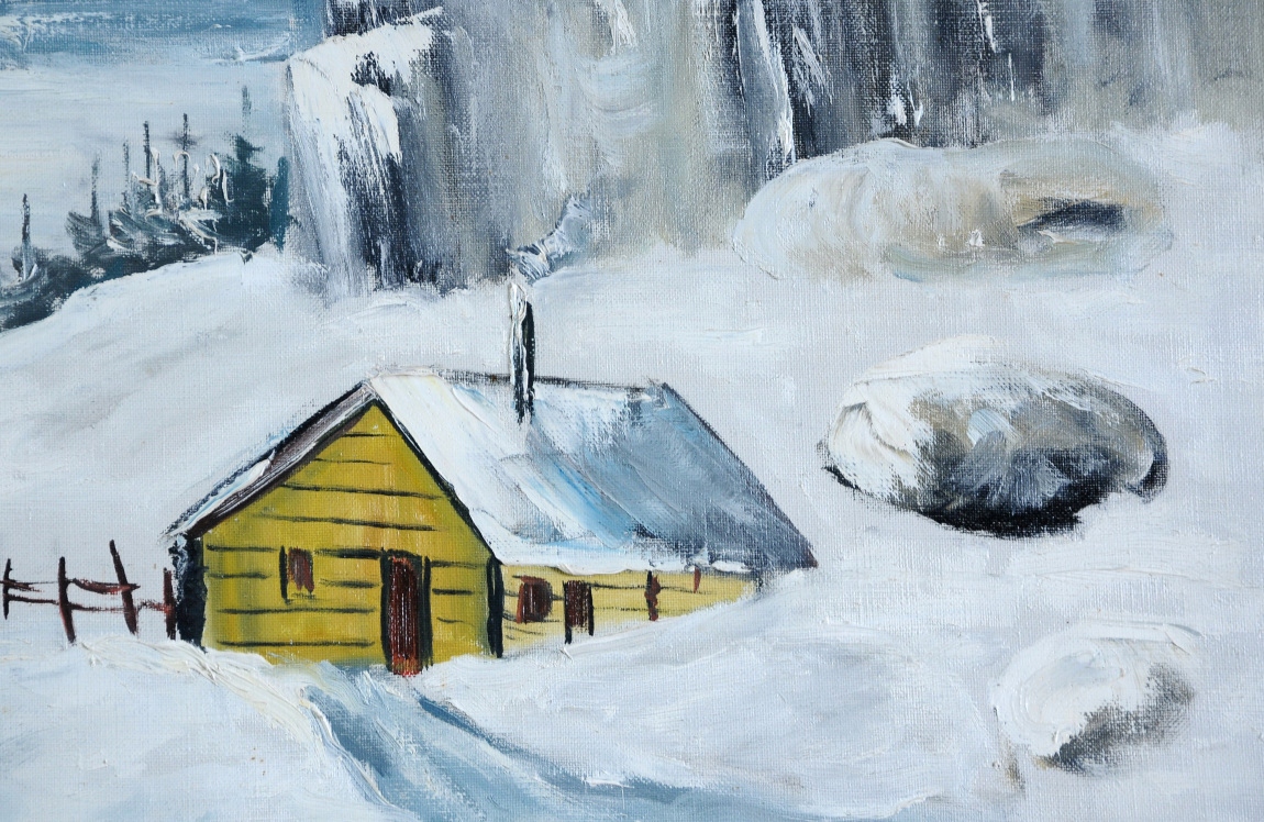 ЗИМНЯЯ УНИКАЛЬНАЯ КРАСИВАЯ КАРТИНА МАСЛОМ 1966 ГОДА!