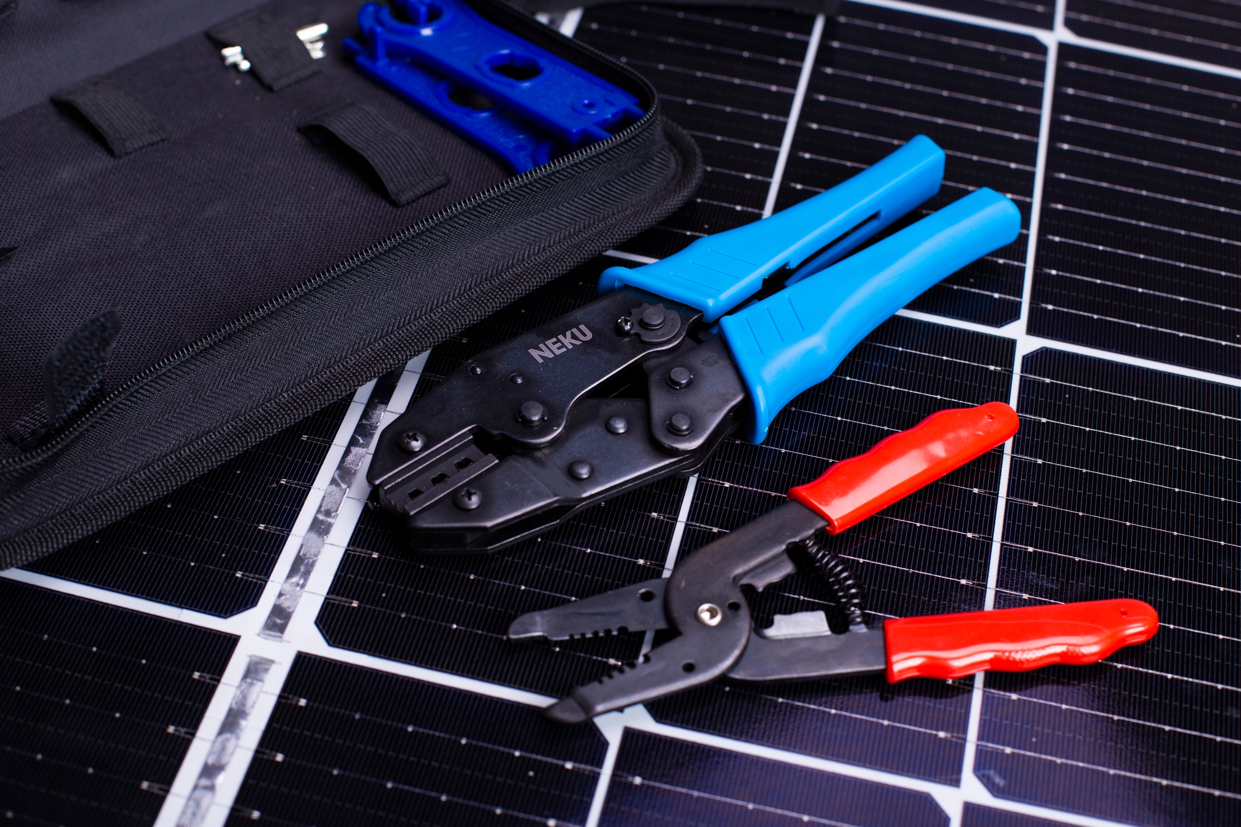 Набор твердых инструментов, совместимых с разъемами MC4 и наиболее популярными кабелями, используемыми в фотогальванике.
