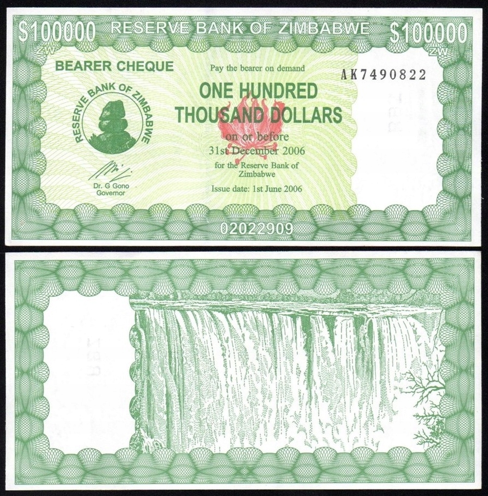 Зимбабве 100000 ДОЛЛАРОВ P-32 UNC серии AK 2006 г.
