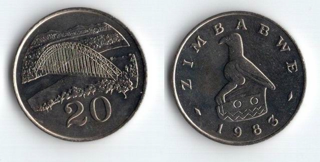 ЗИМБАБВЕ 20 ЦЕНТОВ 1983 ГОДА НЕМАГНИТНЫЕ