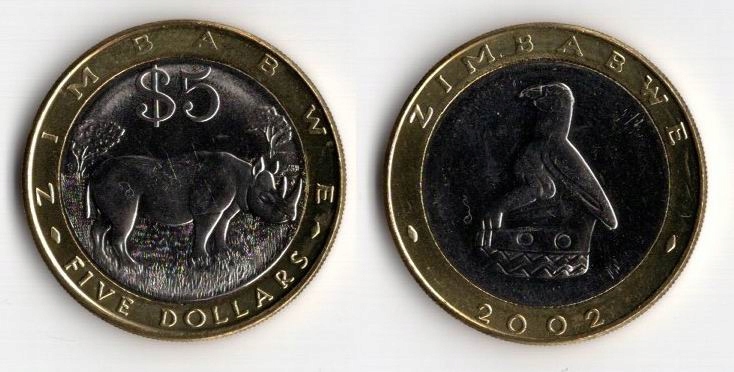 ЗІМБАБВЕ 2002 5 ДОЛАРІВ