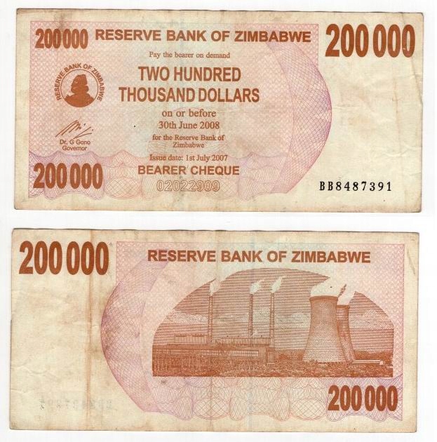 ЗИМБАБВЕ 2007 200 000 ДОЛЛАРОВ