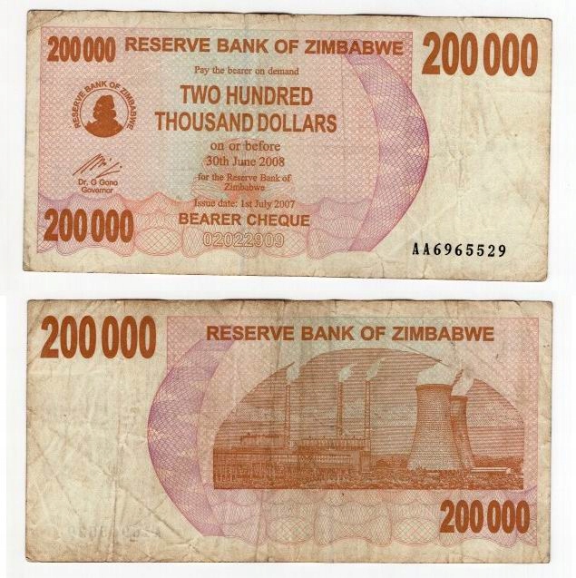 ЗИМБАБВЕ 2007 200 000 ДОЛЛАРОВ