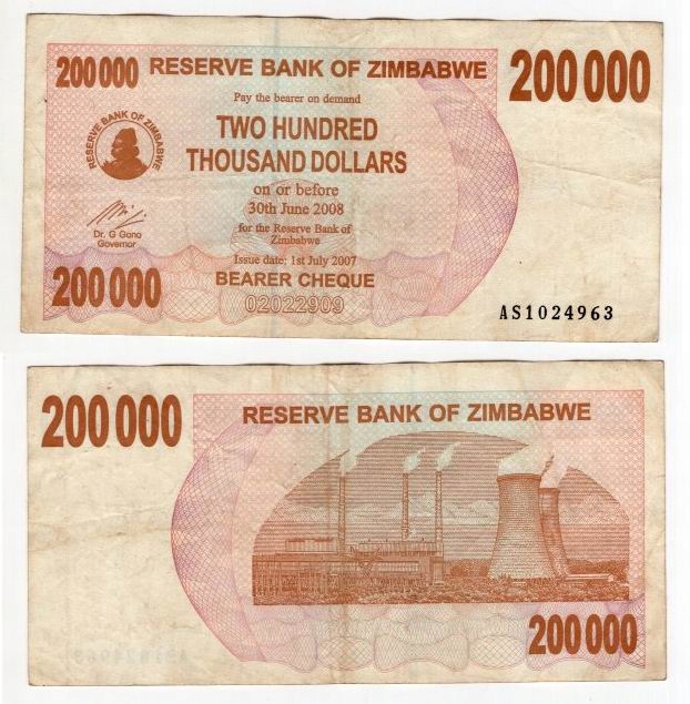 ЗИМБАБВЕ 2007 200 000 ДОЛЛАРОВ