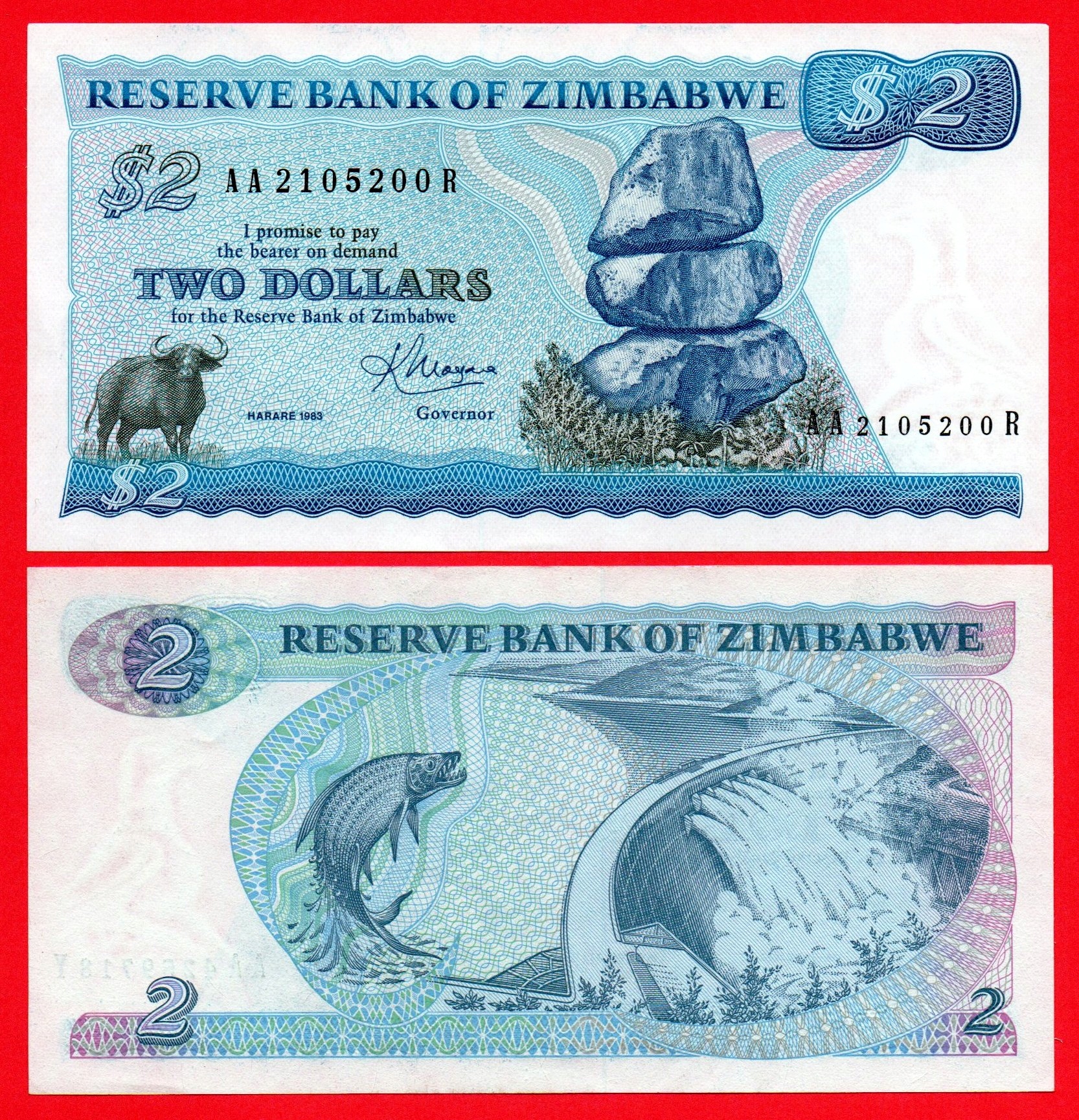 2 ДОЛЛАРА ЗИМБАБВЕ 1983 AA P-1b UNC